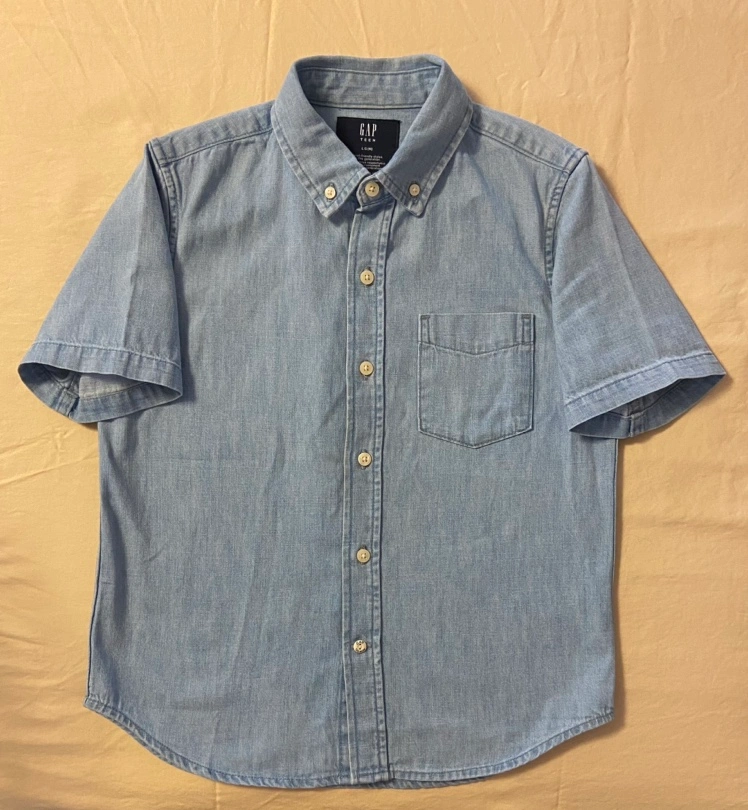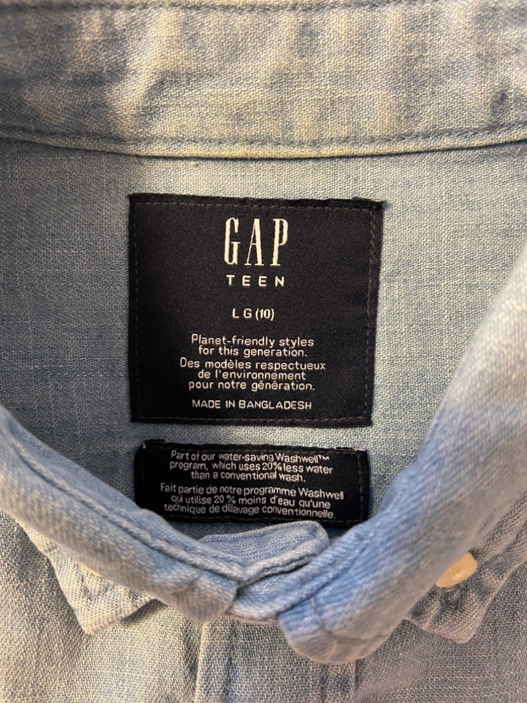 GAP Teen Light blue denim shirt with a chest pocket. Made in Bangladesh. Size LG (10).