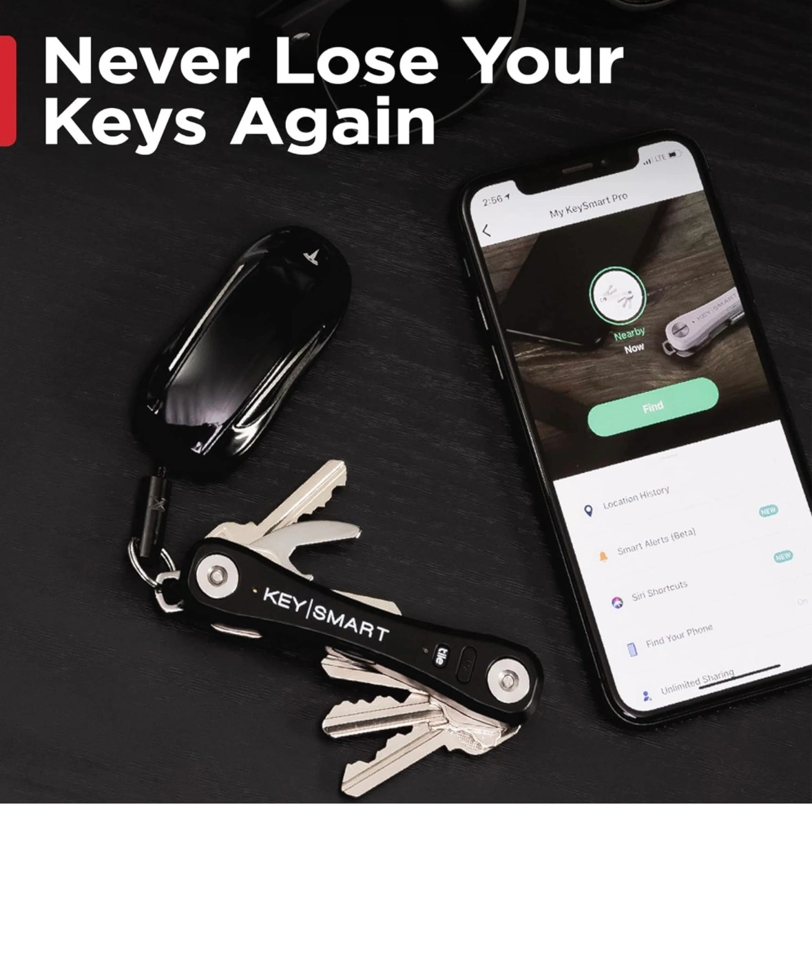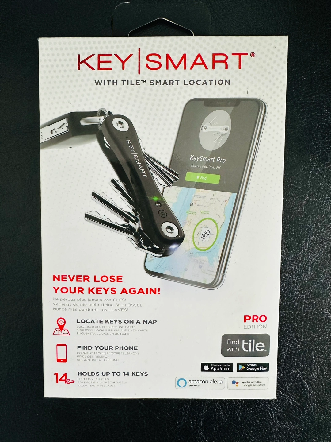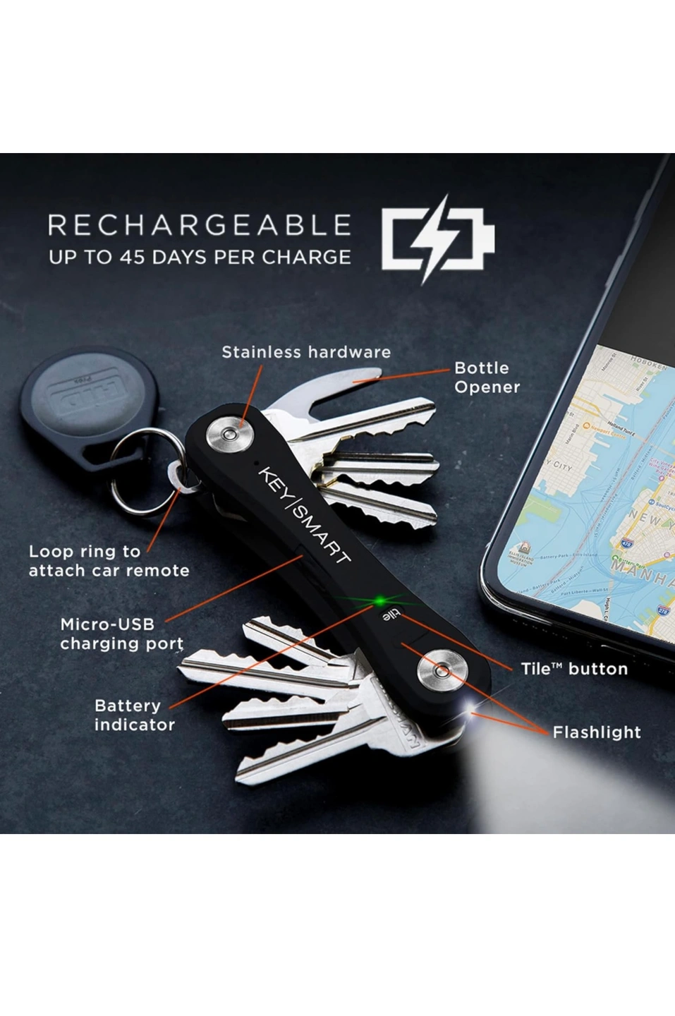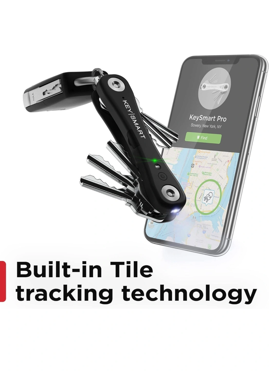 KeySmart Pro with built-in Tile technology. Never lose your keys again! This product allows you to locate your keys on a map and find them with your phone.