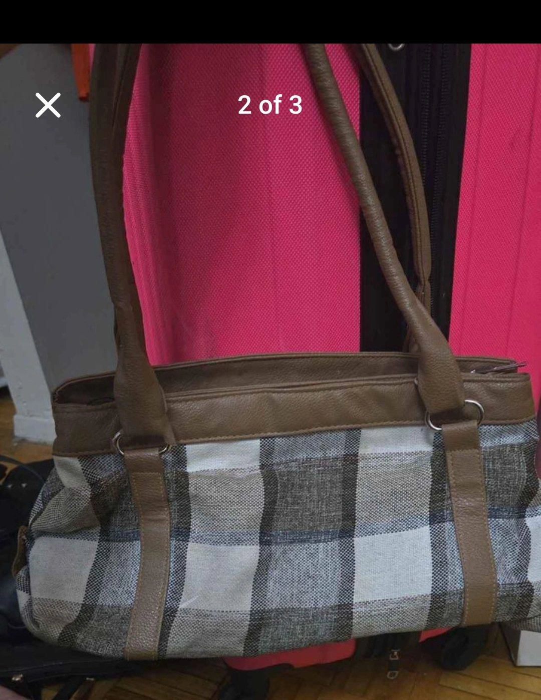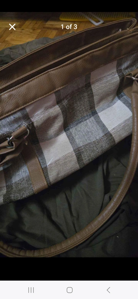 Brown and White Plaid Handbag