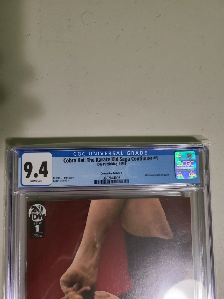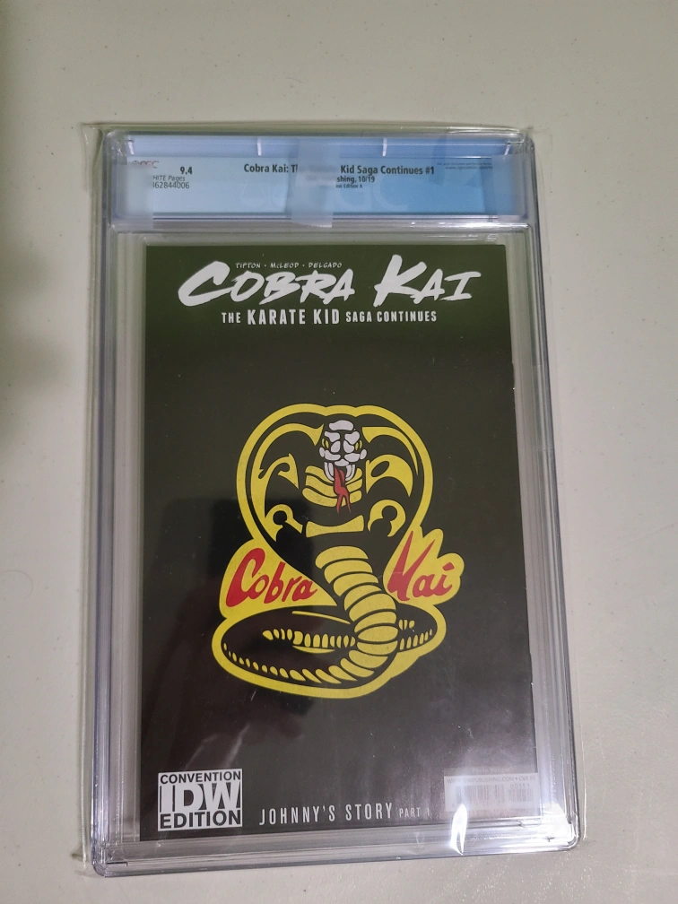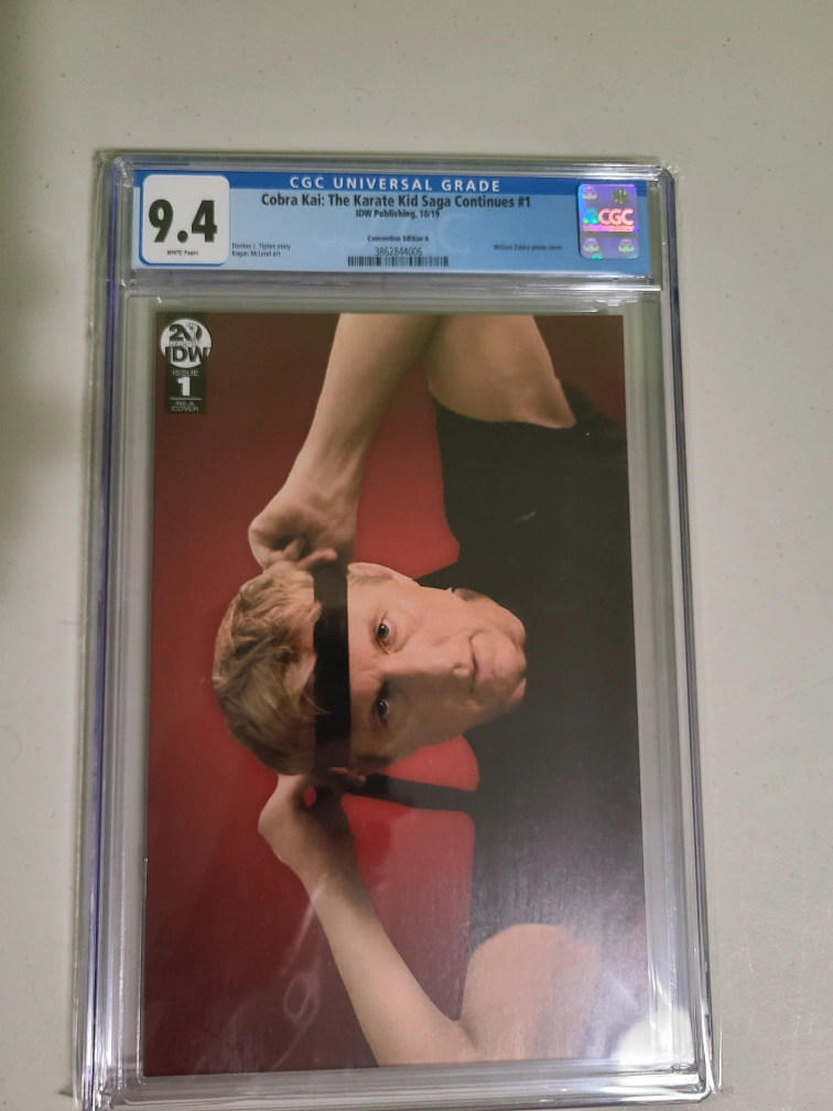 A CGC graded 9.4 copy of Cobra Kai: The Karate Kid Saga Continues #1. Convention Edition A, with William Zabka photo cover.