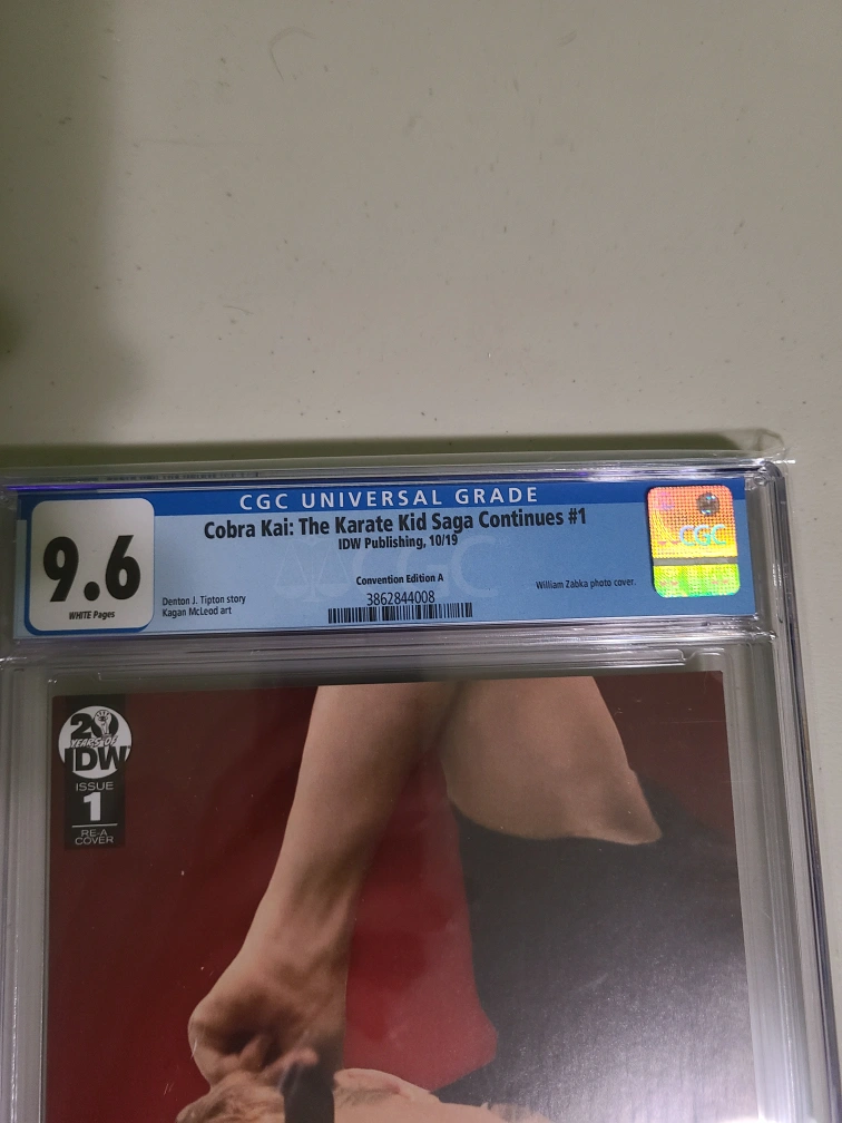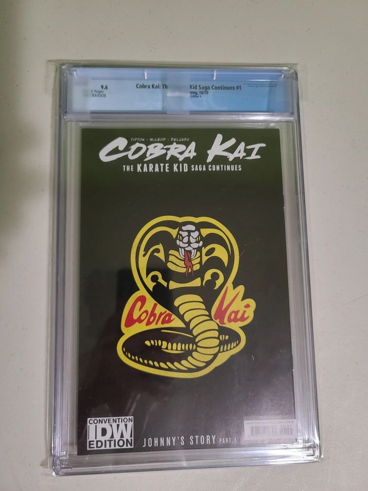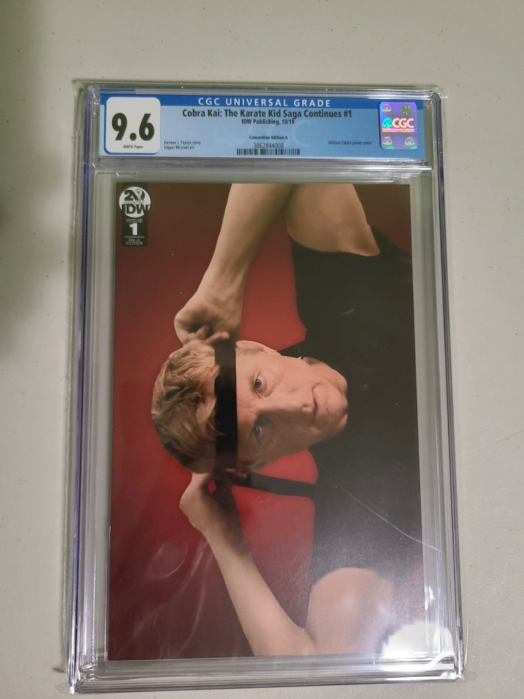 CGC graded 9.6. Convention Edition. William Zabka photo cover. Issue #1 of this ongoing series. This is the first issue of the new series that chronicles the story of Johnny Lawrence from The Karate Kid films. A must-have for any fan of the Karate Kid!