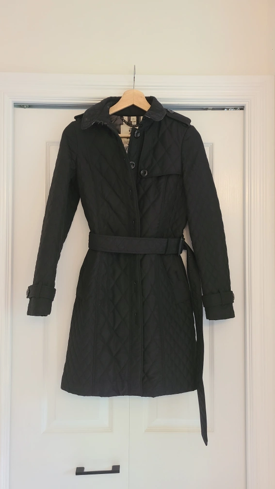 Authentic Burberry Black quilted jacket with a belt. Like new to excellent condition. US 2 fits size xs to small. Pick up in maple ridge or meet up in surrey guildford area.