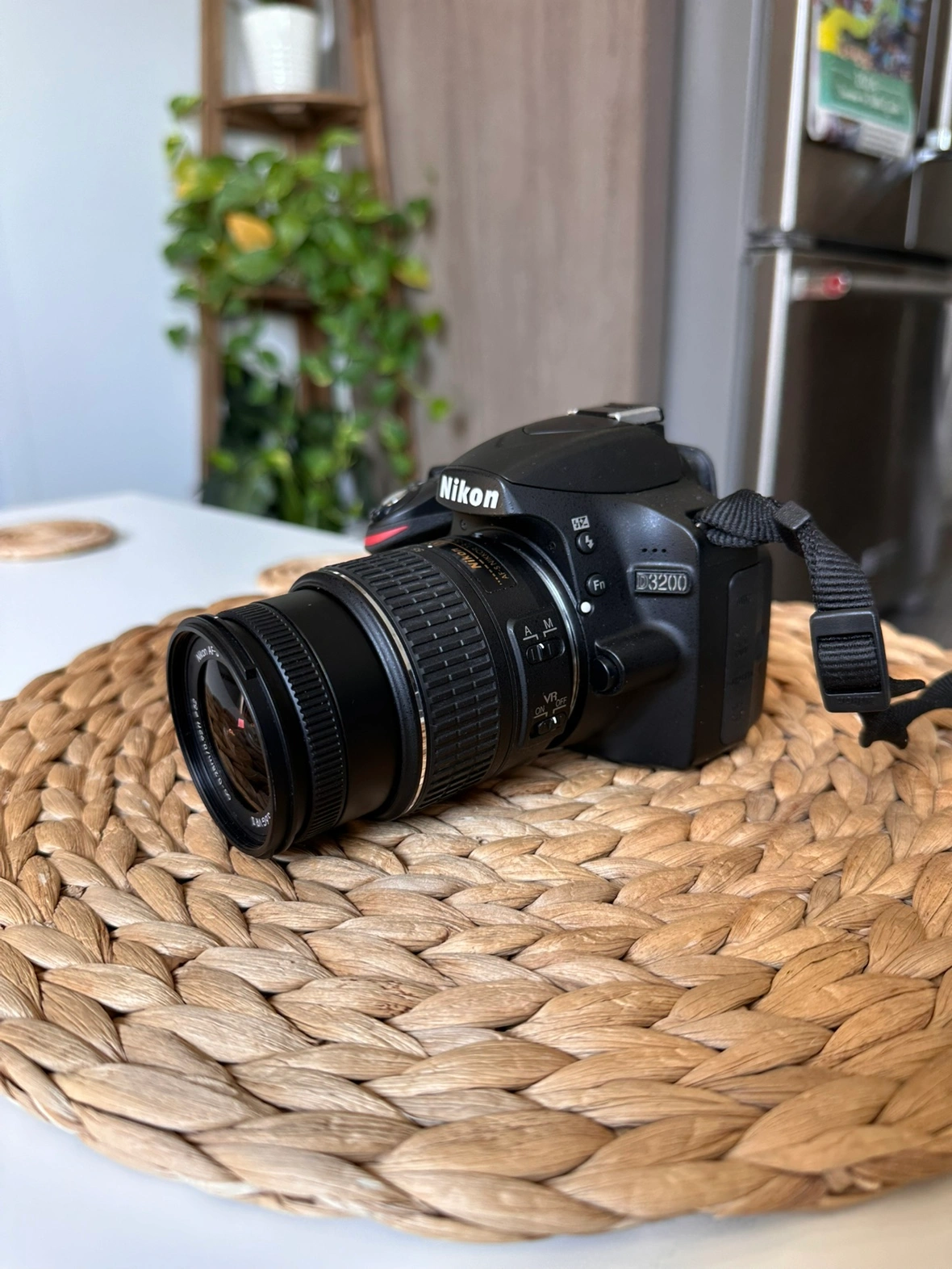 This kit includes the Nikon D3200 camera, 18-55mm f/3.5-5.6G VR II lens, a rechargeable battery, a battery charger, a brand new camera case, a strap, a USB cable, an AV cable, and a CD with the Nikon Reference Manual.