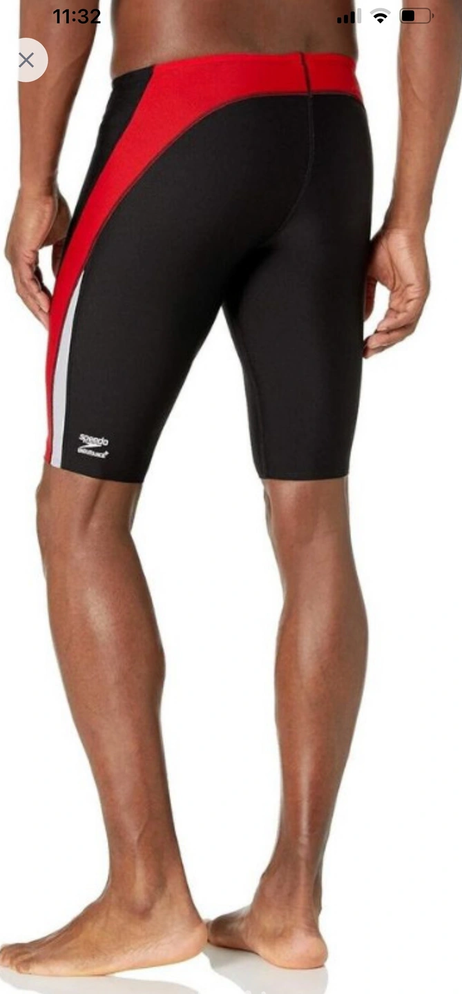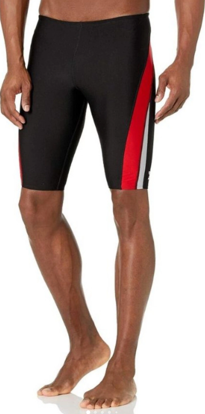 Speedo Men's Endurance+ Launch Splice Jammer Swimsuit Size 38 US Men’s - Black/Red Splice