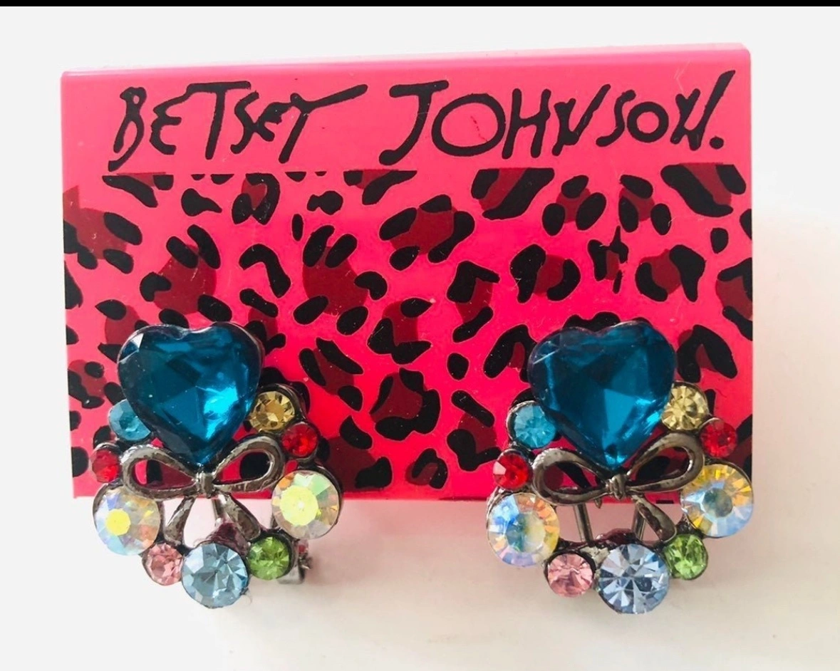Betsey Johnson Blue Crystal Heart Earrings