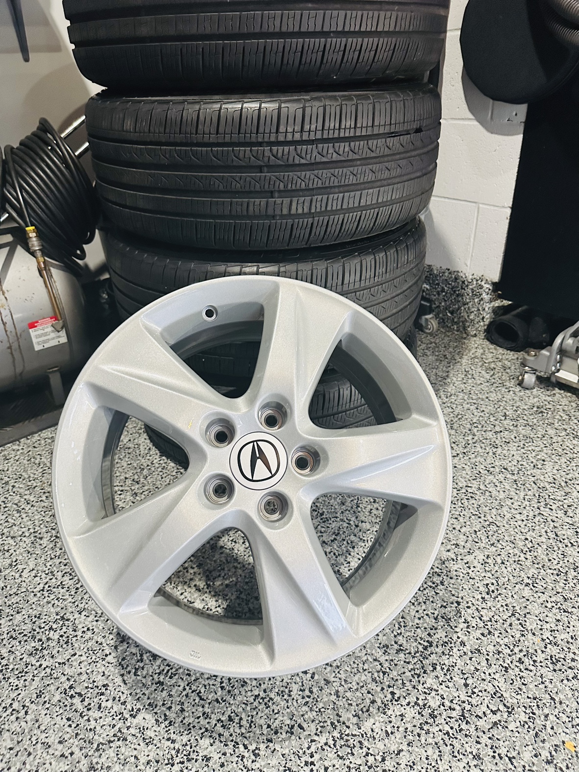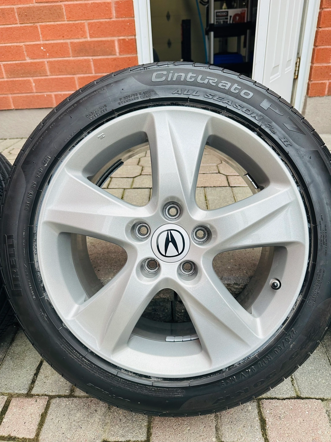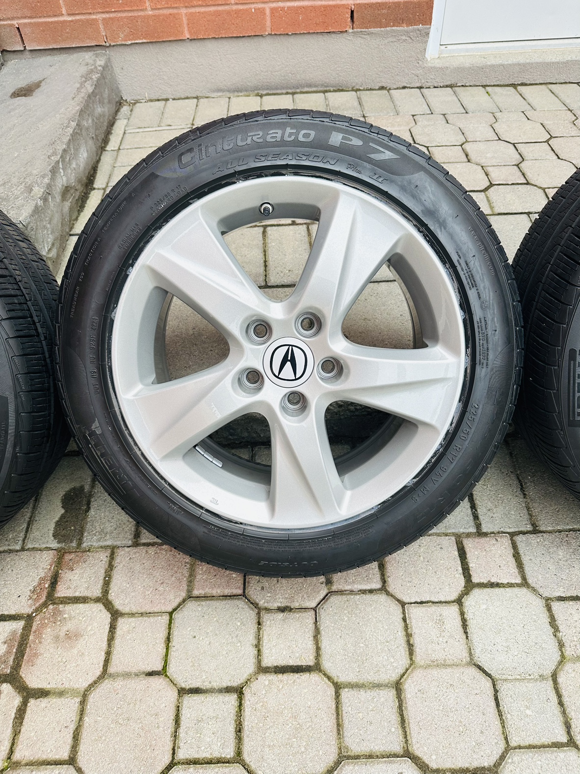 These were professionally powder coated in ‘Acura Silver’ in 2022 and have Pirelli P7 all seasons installed (2 seasons use only about 10k)