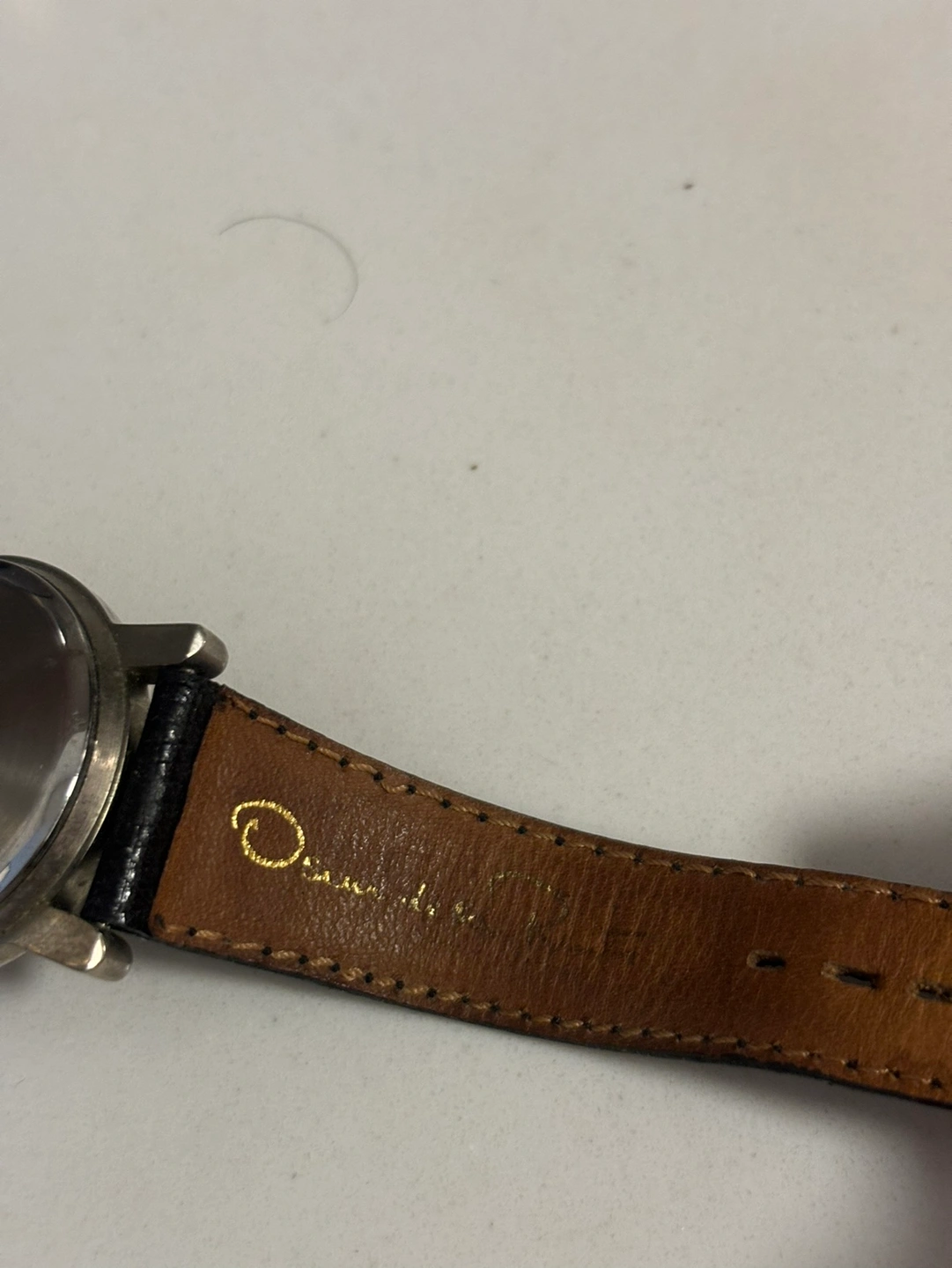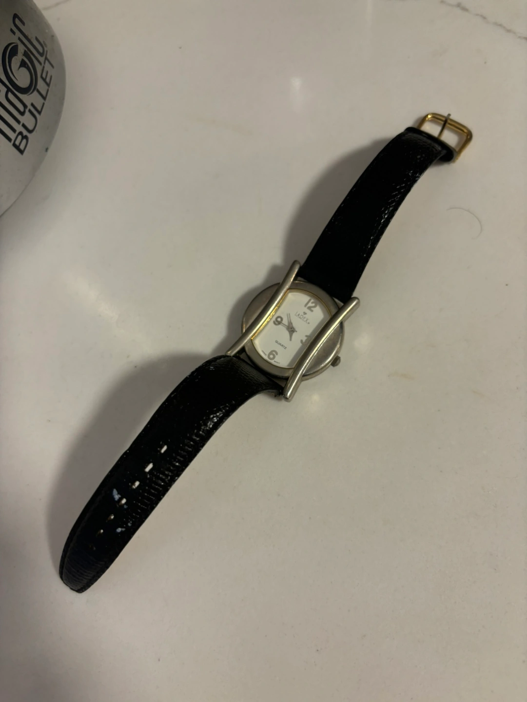 Women's Ladex watch with black leather band. Vintage watch, see photos, on leather band:Oscar de la Renta