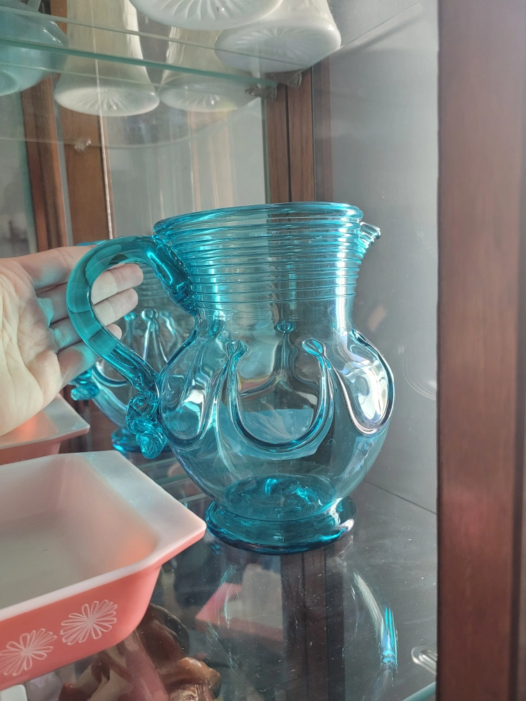 no lowball offer. the gallery owner who sold it last offered to keep it there on consignment for me but i prefer to sell myself for cash. This is hand-blown fine art pitcher reproduction of the earliest known Canadian glass blowing company.