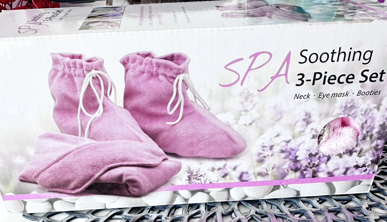28Set includes neck wrap, eye mask and booties, pick up only.