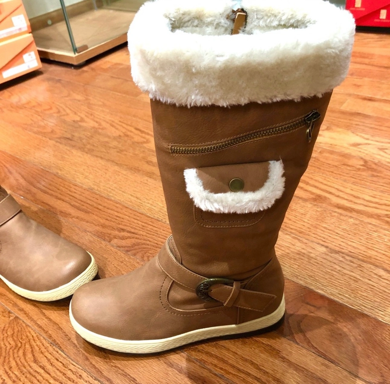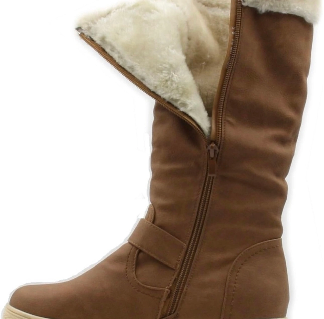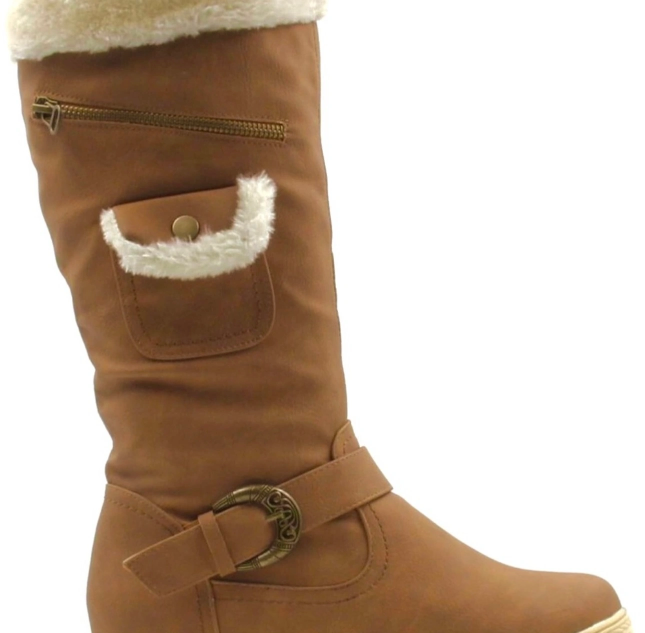 Stylish and Cool Comfort Women's Knee High Zipper Up Winter Boots with Fur Lined Collar and Small Pocket You won’t find this unique design elsewhere 😍 New Size 5.5 fits also size 6