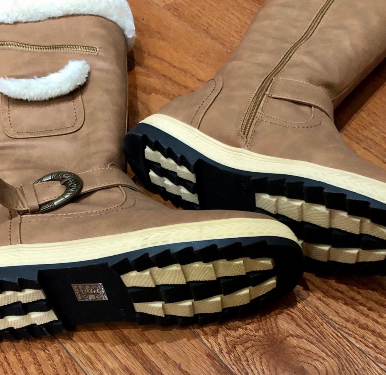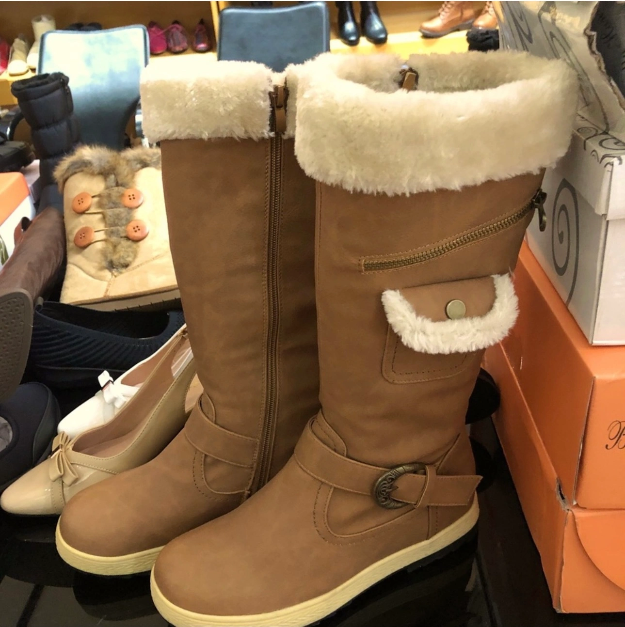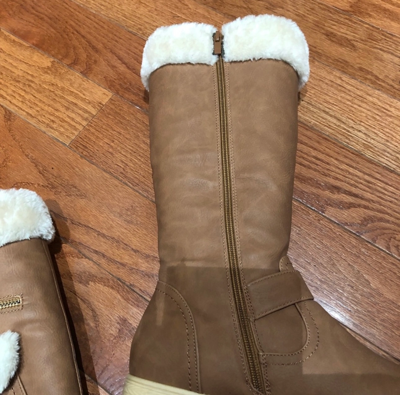 Stylish and Cool Comfort Women's Knee High Zipper Up Winter Boots with Fur Lined Collar and Small Pocket You won’t find this unique design elsewhere 😍 New Size 5.5 fits also size 6