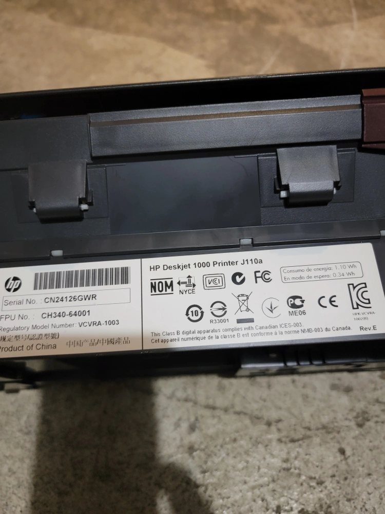 This item is a HP Deskjet 1000 J110a printer that was previously used for a short time. It comes with a power cable. It is a good basic home printer.
