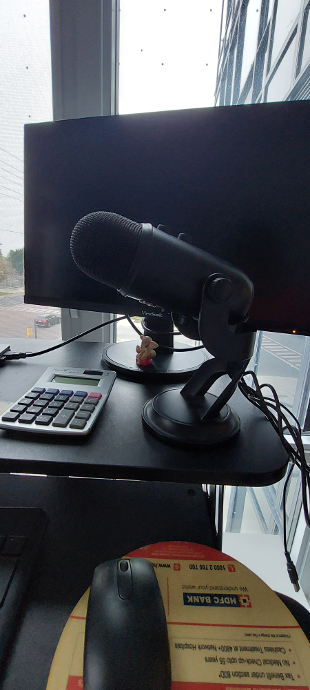 This microphone is great for recording vocals, podcasts, and streaming. It has a great sound quality and comes with a stand for easy placement. It is in great condition and ready to be used for your next project.