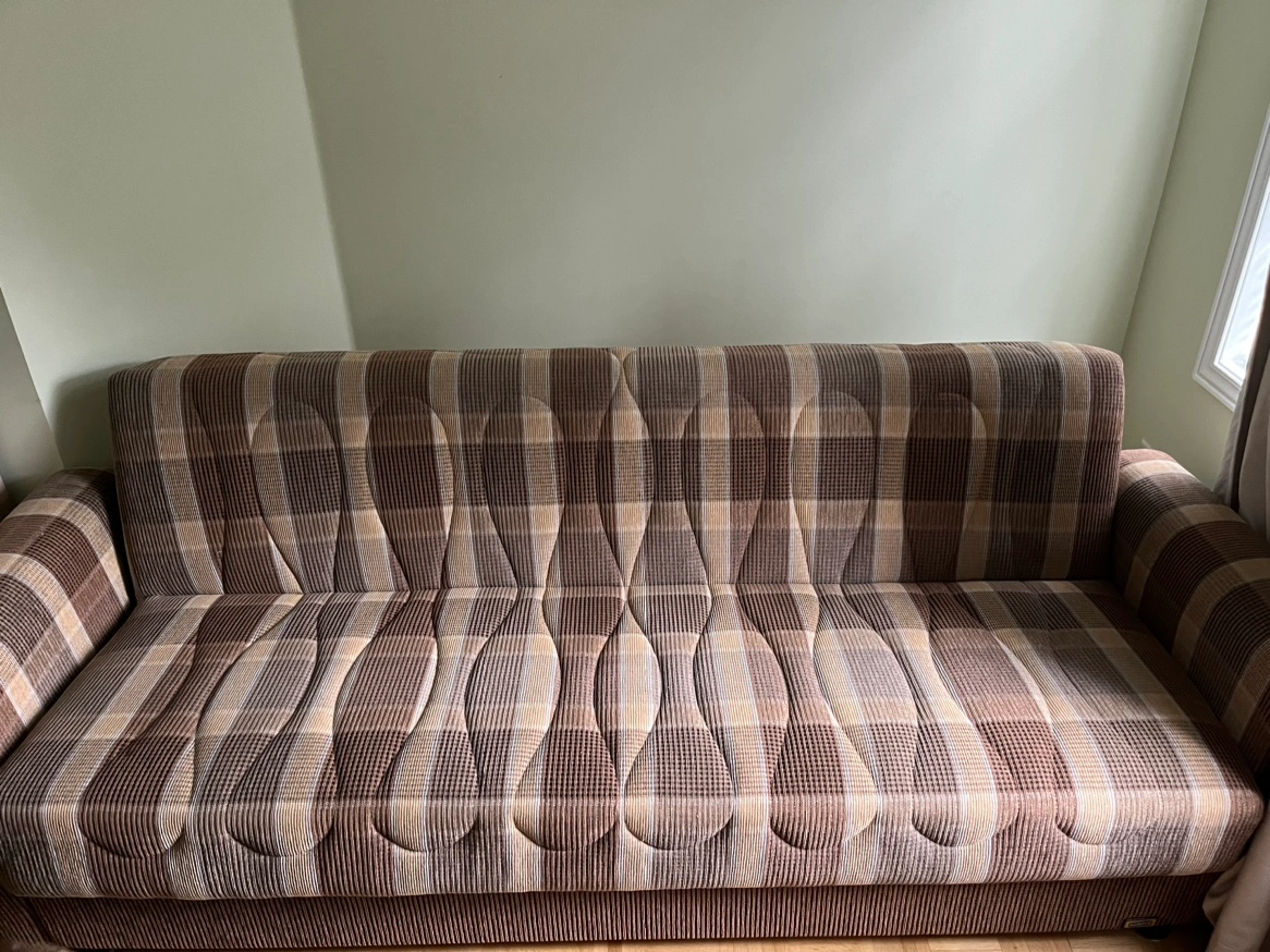 Durable and reliable European construction couch, used but still looks and works like new with lots of life left. Has plenty of storage space underneath and folds into a twin sized bed. On the firmer side, quite supportive and comfortable. Help us clear the space for our LO!