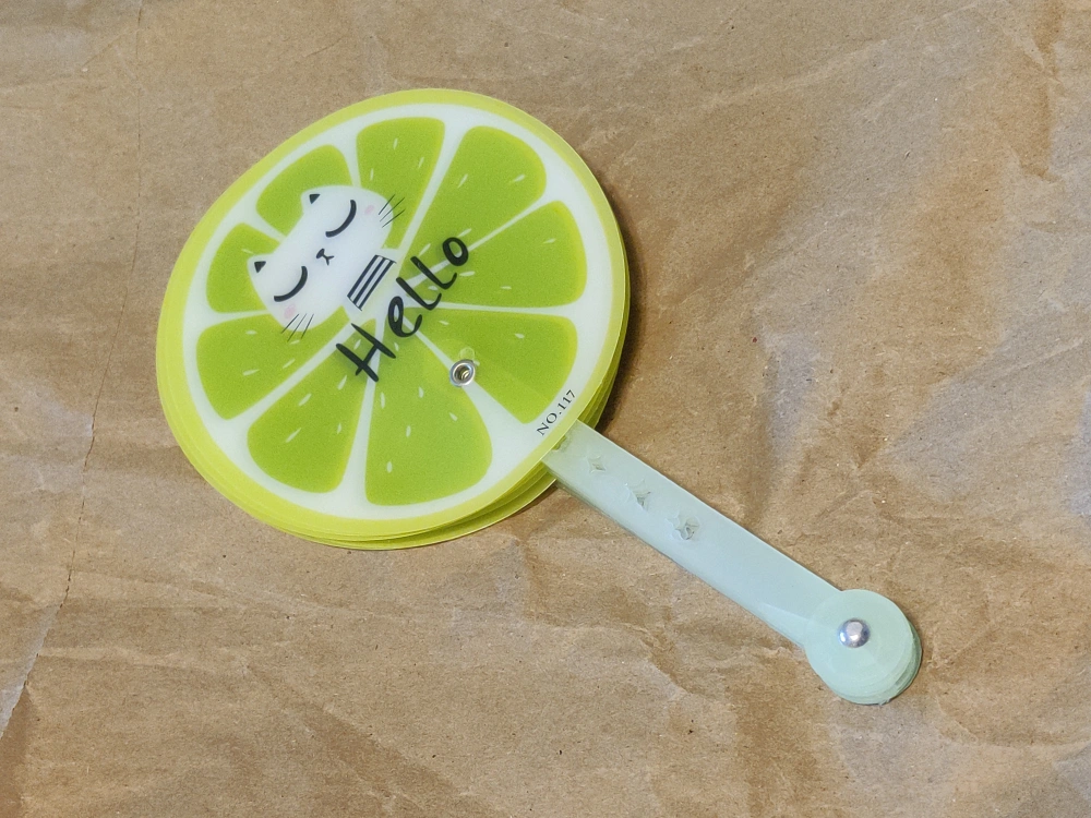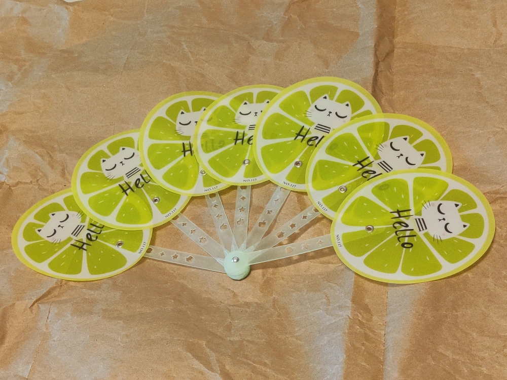 A small, foldable hand fan with a cute cat and lemon design. From a no pet non smoking home Meetup near Finch and Yonge Please check other listings on my profile :)
