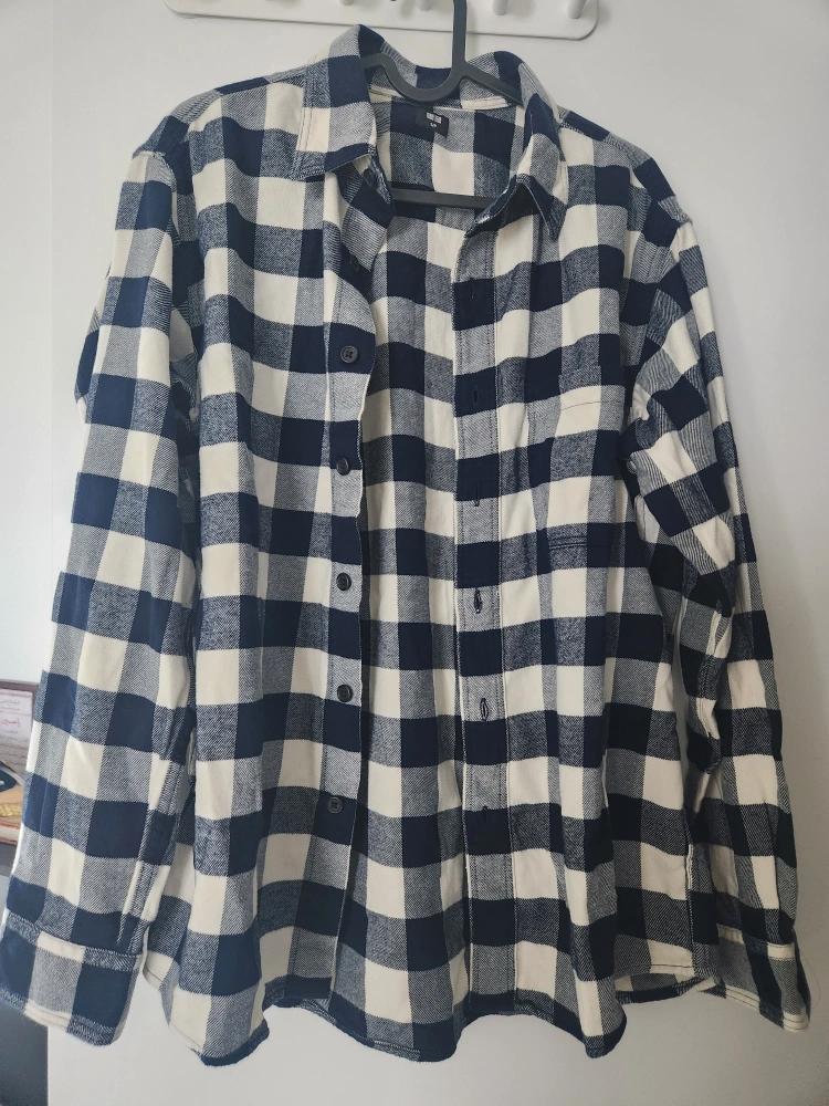 Brand new unisex Blue and White Plaid Flannel Shirt from Uniqlo. The material is super soft, lovely for this weather.