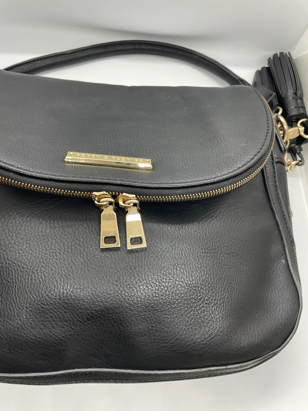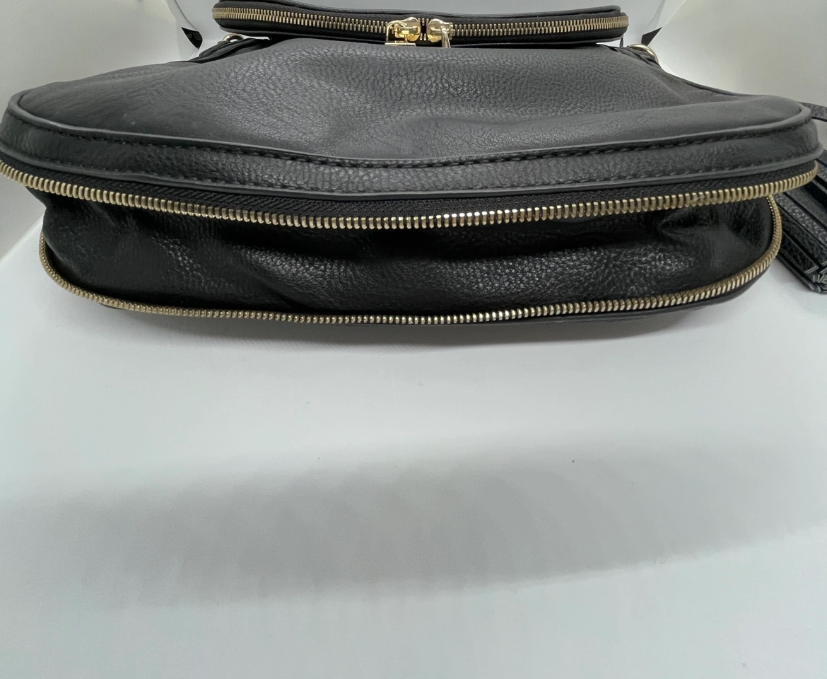 539This stylish black crossbody bag is perfect for everyday use. It features a gold zipper The bottom zipper allows the bag to expand, making it bigger or smaller as needed. The bag has several pockets to keep all your items organized. This is the perfect purse for the upcoming fall/winter season. Retail price is $125. It is in good condition. Moving Sale ๐