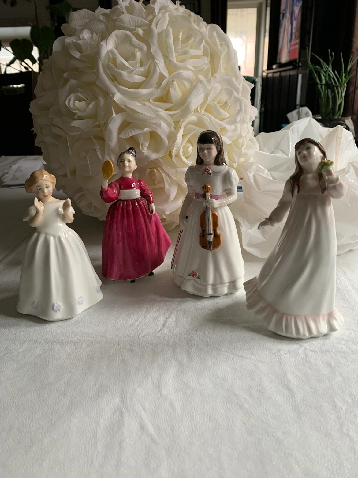 li have 4 Royal Doulton figurines $40.00 each in the "Little Girls" series. Each figurine has a different dress and pose. Royal Doulton all made in England and in Perfect condition. From left to right