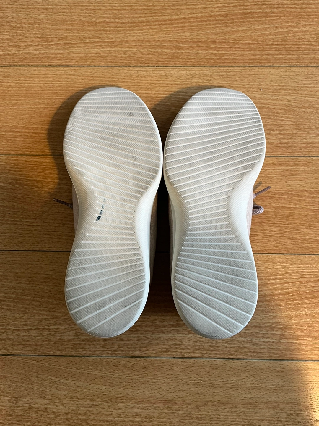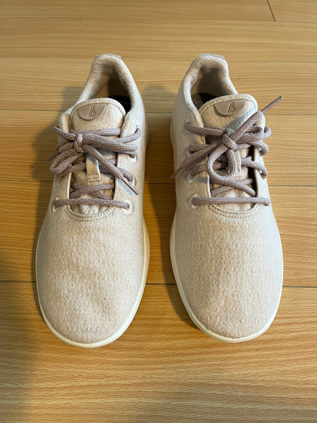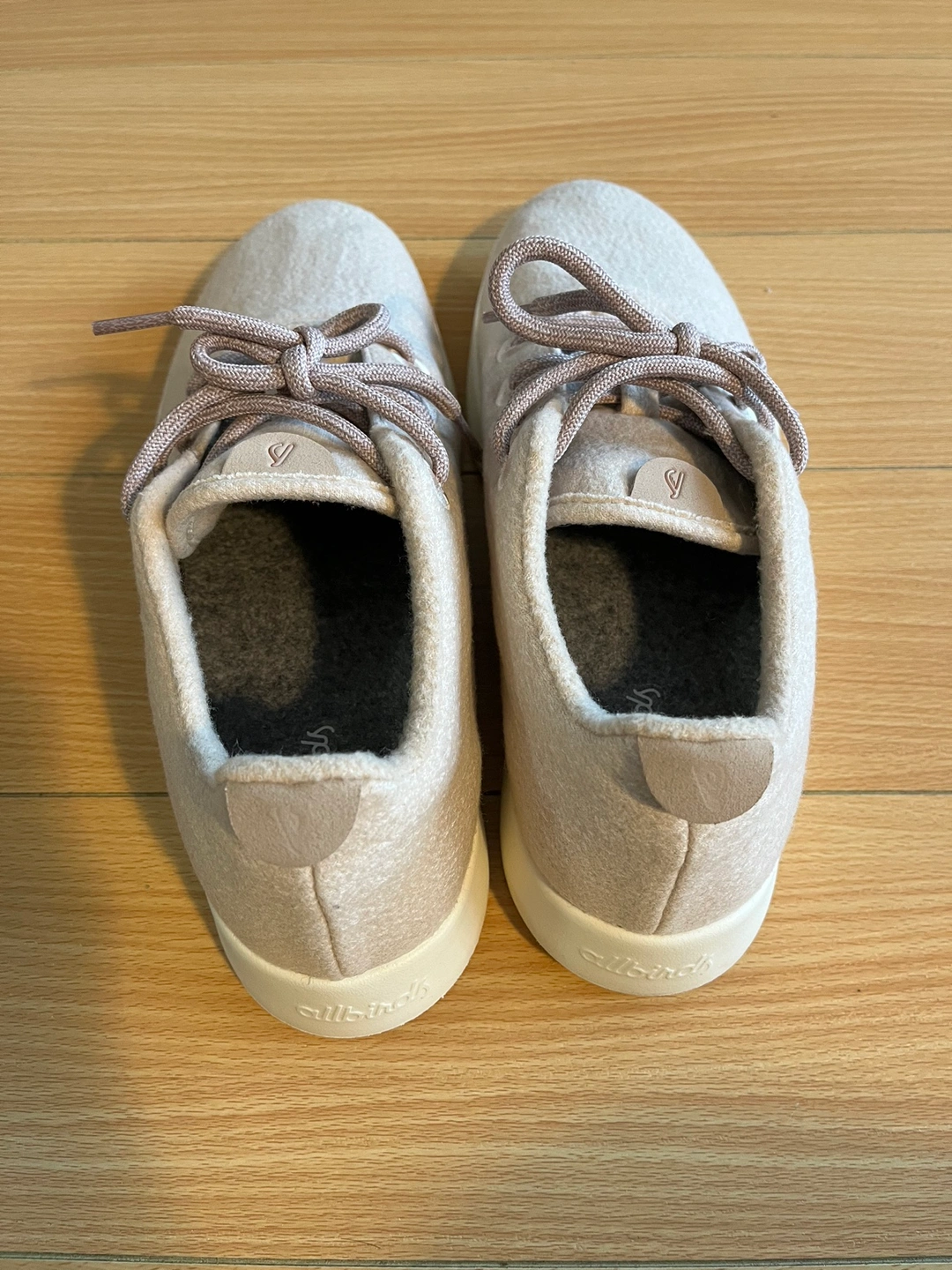 Beige colored upper, cream colored sole. Made in Korea with NZ merino wool.