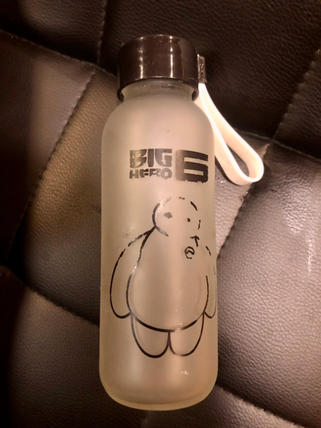 Cute little bottle for any Baymax fans out there. Holds approx. 350 mL. Baymax is fading a bit but nothing a little sharpie can’t fix?