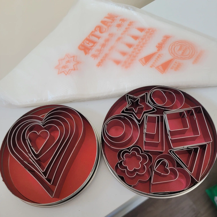 194Most of the cutters are brand new Only used once Total 30 cutters Piping bags are brand new sealed in package, i will say at least 10 bags + $10 for all 16th & McCowan