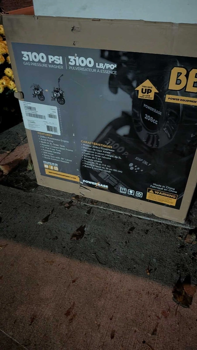 603100 psi gas power washer. Bought 2 weeks ago for 450+ tax. Used 1 time, changed direction for business therefore not needed anymore. Selling for 300.