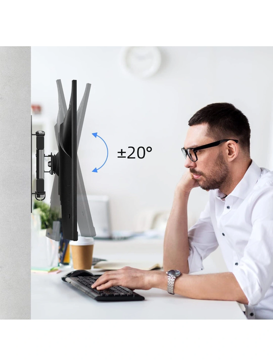 Full Motion TV Mount for 13-32 inch TVs/monitors, swivels 90 degrees, tilts 20 degrees. Can hold up to 28 lbs. Comes with all mounting hardware.