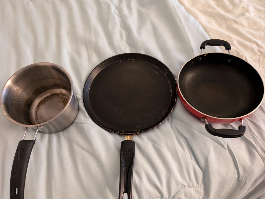 Buy & SellSet of Three Pots and PansSet of Three Pots and PansFreeA set of three pots and pans including a small pot, a frying pan, and a larger saucepan.ConditionGoodWHERE TO MEETCheck LocationView MapSELLERBrownThompson959 reviews4 chats·0 favorites·67 views