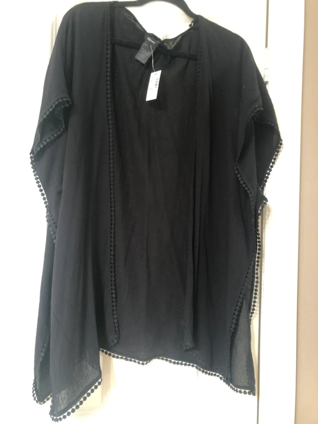 Black kimono with pom pom trim. Light and flowy. Perfect for a beach day!