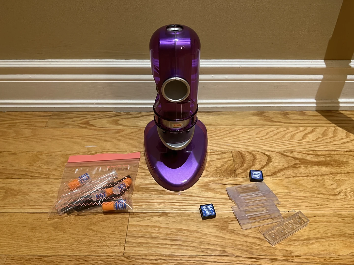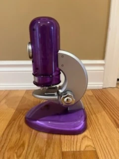 Like new, real microscope with 3 different sizes. Has been only opened and used once, so everything is perfect condition! Comes with film, tubes, glass plate to place specimen. Perfect for kids who love science to explore and learn at the same time!