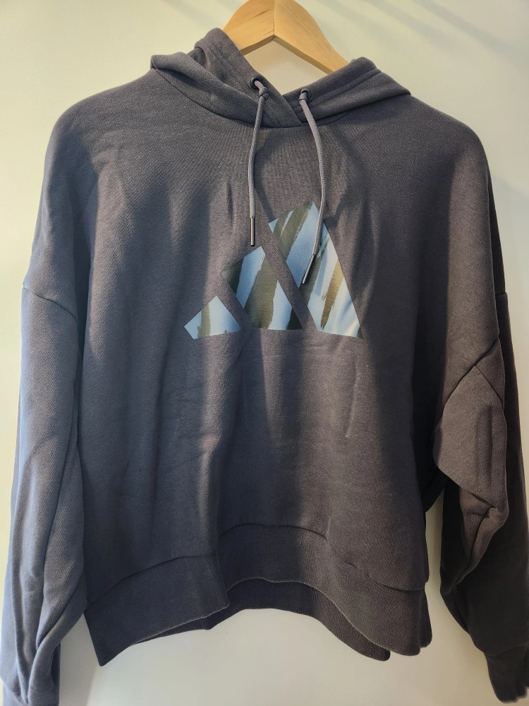 Decluttering my wardrobe so selling this lovely dark blue Adidas cropped hoodie in size medium. it's been worn only a handful of times. There are no rips or stains.