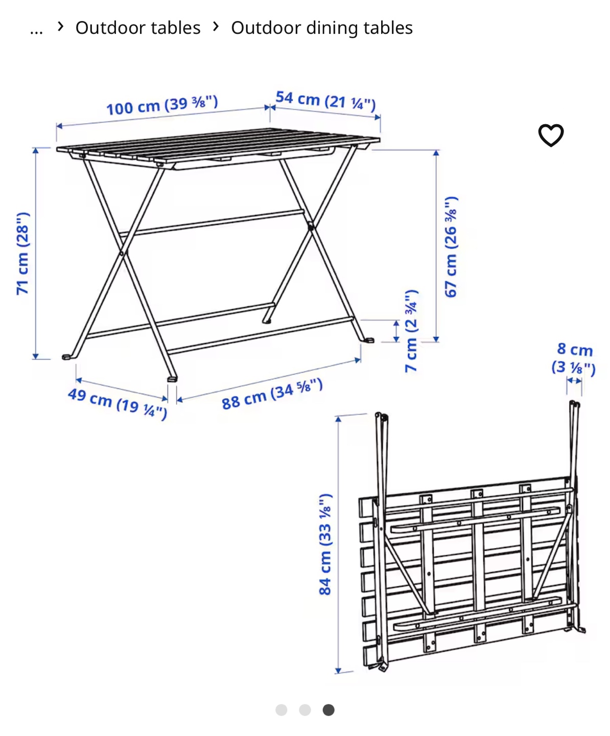 1 / 21 / 2Buy & SellBalcony TableBalcony Table$30IKEA TARNO Outdoor wooden table with a metal frame.Dimensions100x54x71 cmWHERE TO MEETCheck LocationView MapSELLERGraceChurch and Wellesley16818 reviews6 chats·3 favorites·243 viewsSEND CHAT TO SELLERHi Grace! I’m interested in your listing.Hi Grace! I’m interested in your listing.Get the Karrot app to chatSign In to chat