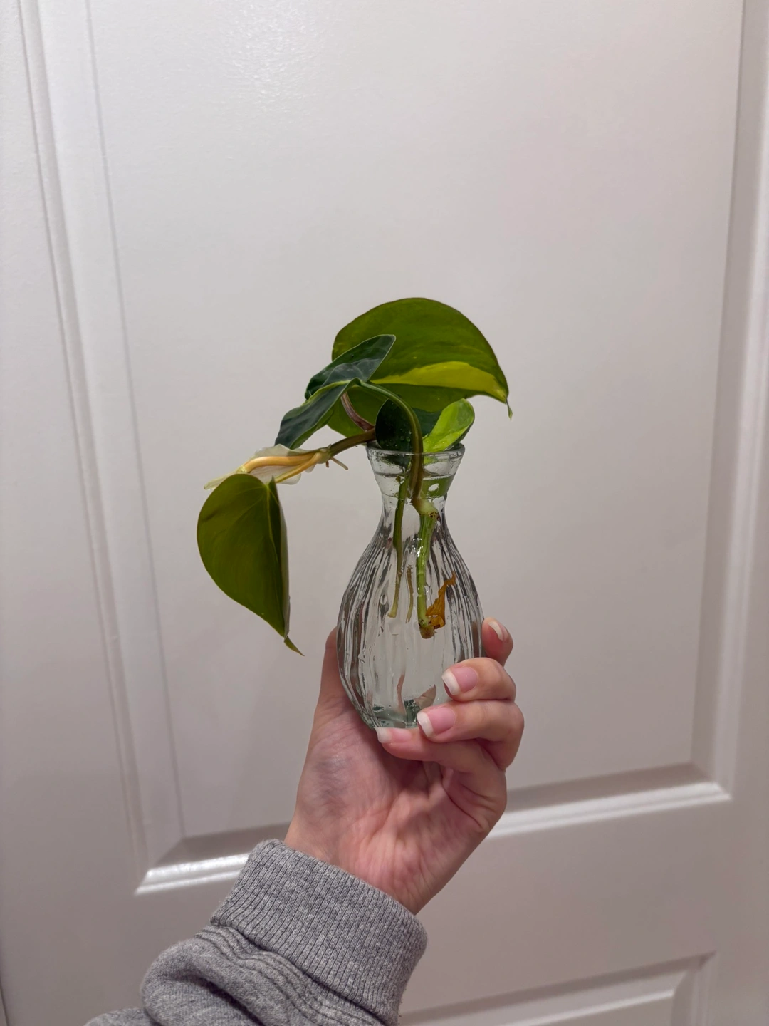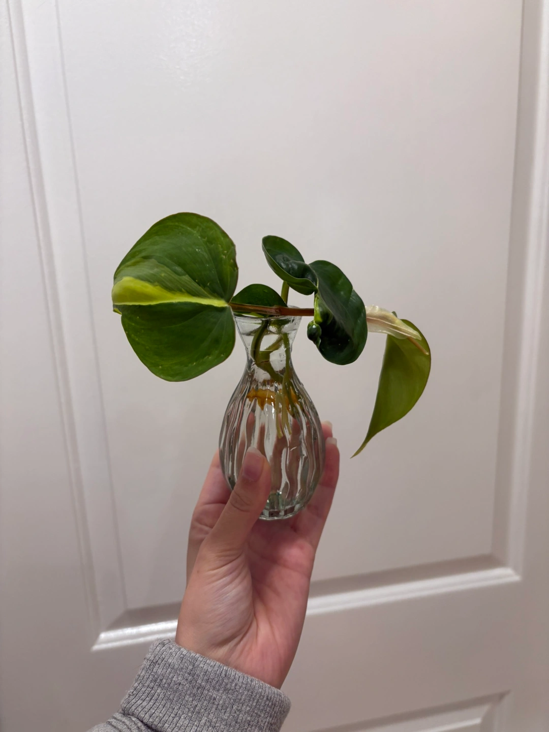 healthy philodendron brazil clipping with 3 leaves, well rooted now (photos are older)