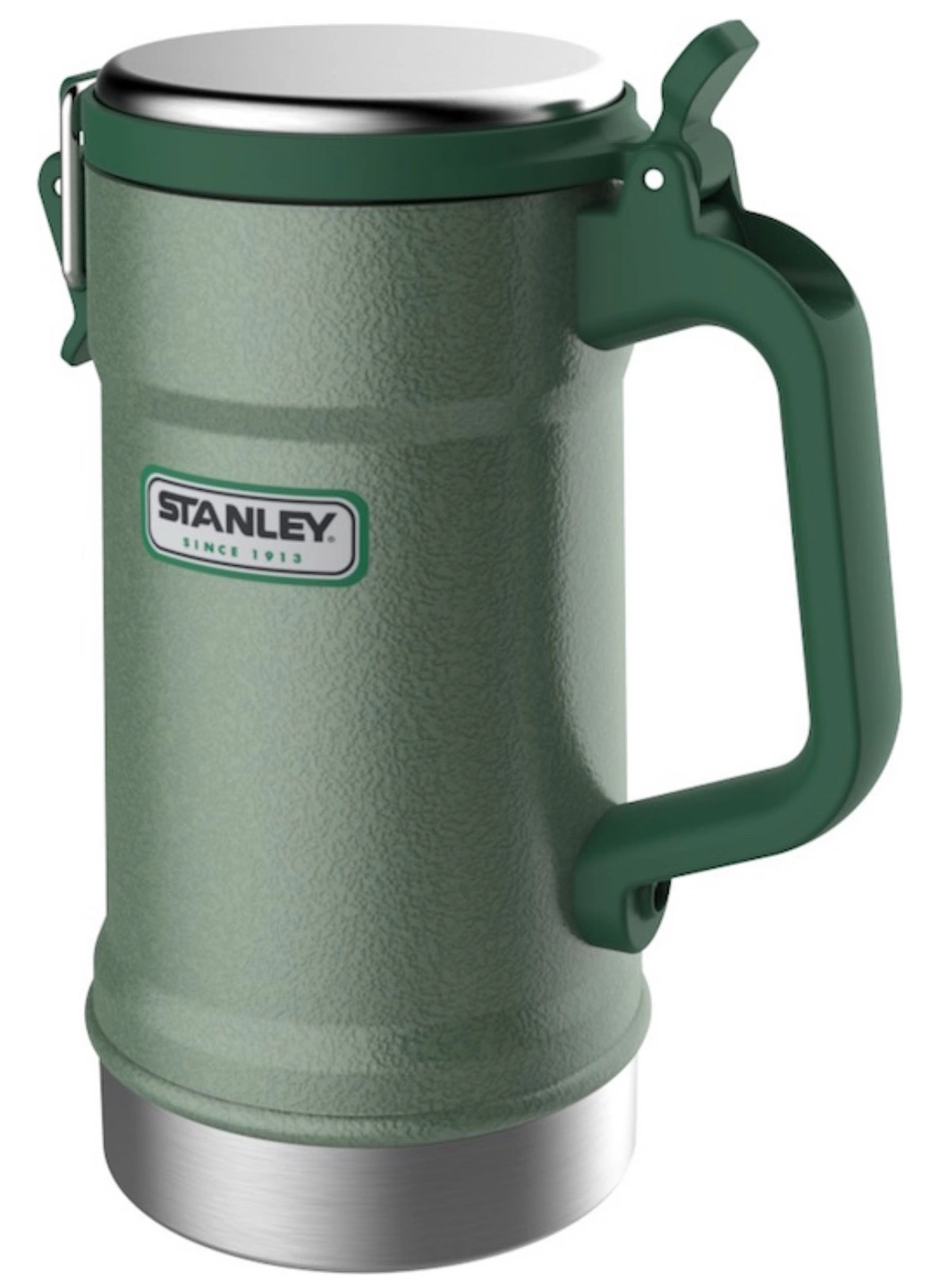 Nobody likes a warm beer (except the British) so when timing works against you and you are forced to part ways with that ice cold beverage right after you have opened it, a way to keep that freshly cracked beer pristine is top priority. Stanley have pulled out the big guns with the Stanley Classic Vacuum Stein, a portable way to keep your beer tip top for up to nine hours. Once the liquid has been poured into the stein the latching lid keeps the beer contained and carbonated until you are ready to drink. The steel body and inner lid ensures there is no plastic contamination with the beer and the 18/8 stainless steel ensured you wont end up with a rusty stein. Dishwasher safe and with a Built for Life lifetime warranty, this beer stein is the perfect travel companion to ensure you never waste another beer again. Designed like their classic vacuum bottles and 64 oz. growler, the Stein features Stanley’s awesome green hammered enamel finish and a big burly handle. Capitalizing on function, the stein comes equipped with a latching lid which allows you to keep your craft beverage carbonated and cold for up to 9 hours. My mouth is already watering with the idea of heading back to the cabin and popping the lid open for some ice cold refreshment a mile or two in.