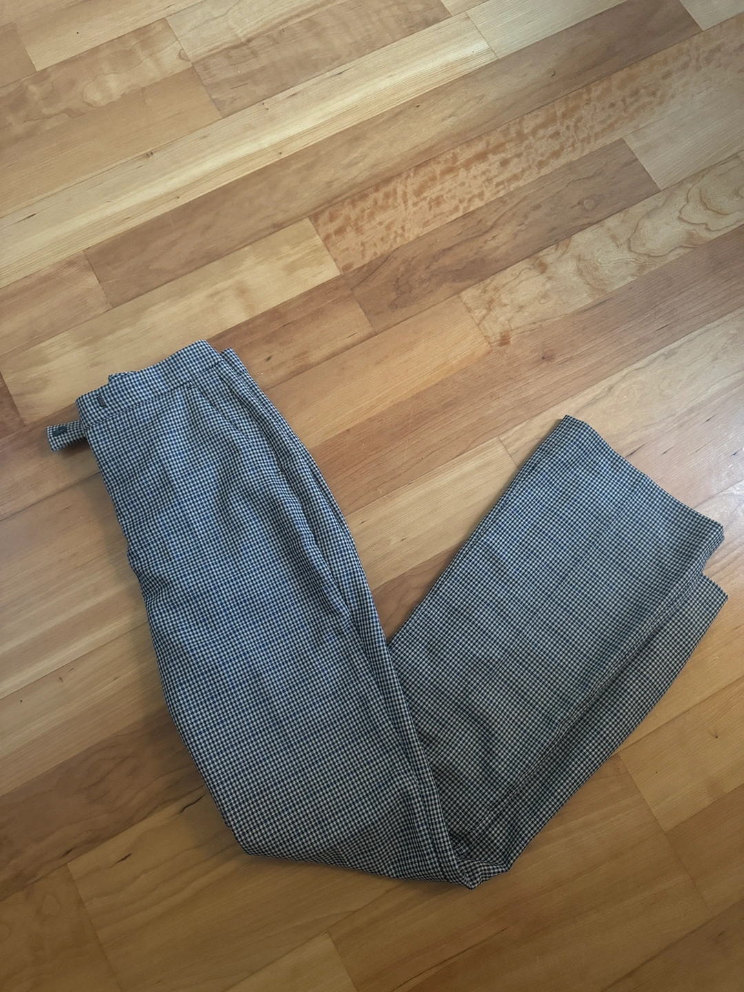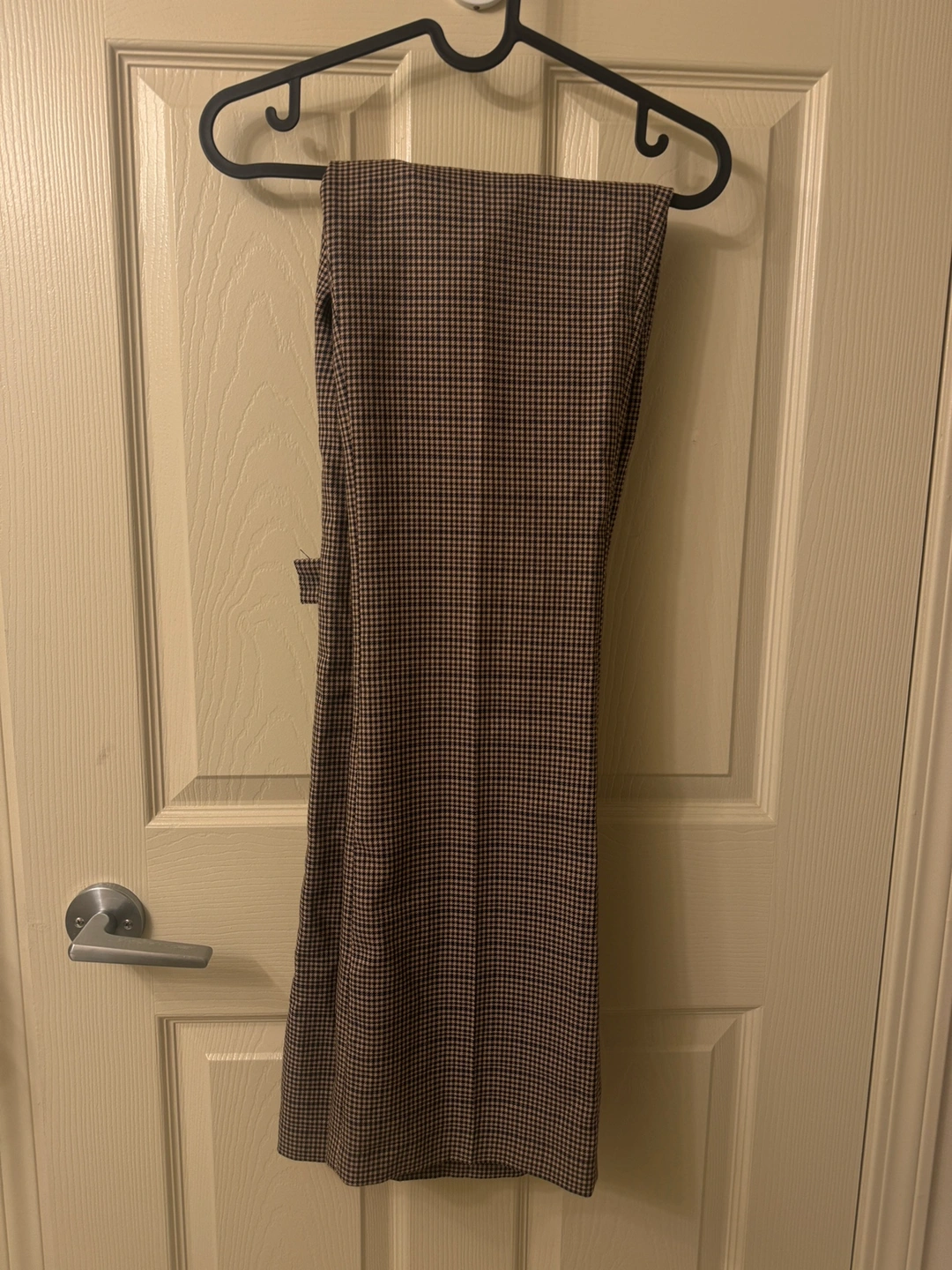 475These pants are in a brown and black checkered pattern. They are a straight leg style. Highwaisted. Discount on Bundles:).