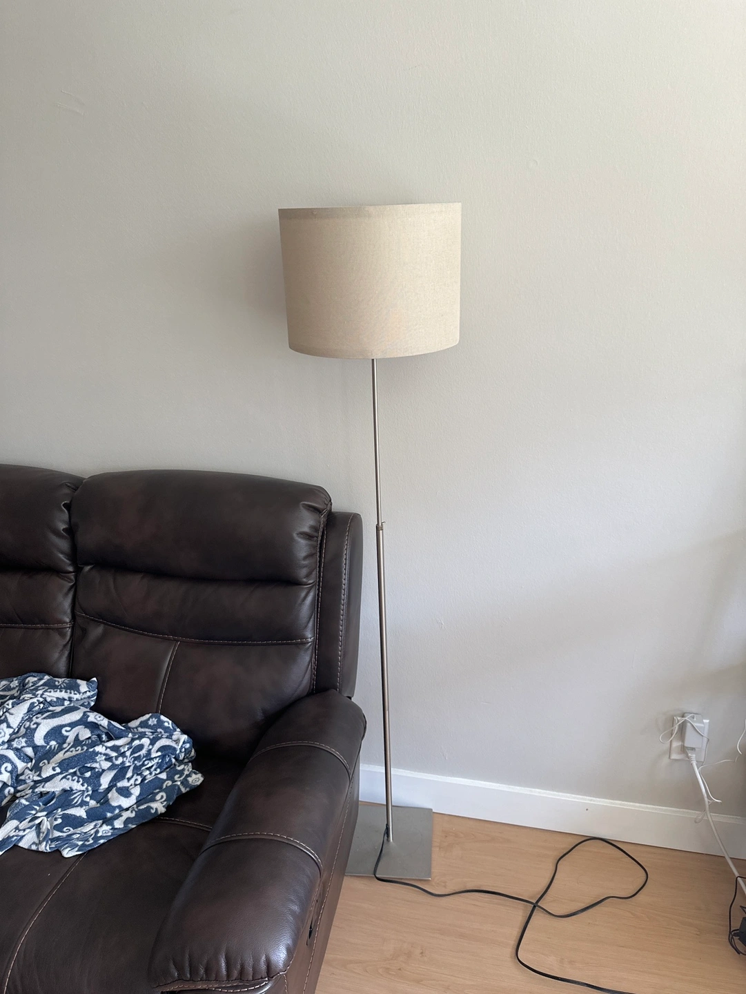 Floor lamp with smart bulb with dimming options and colors. Has a manual switch and also can be controlled by Alexa or Phone app. All for $$15