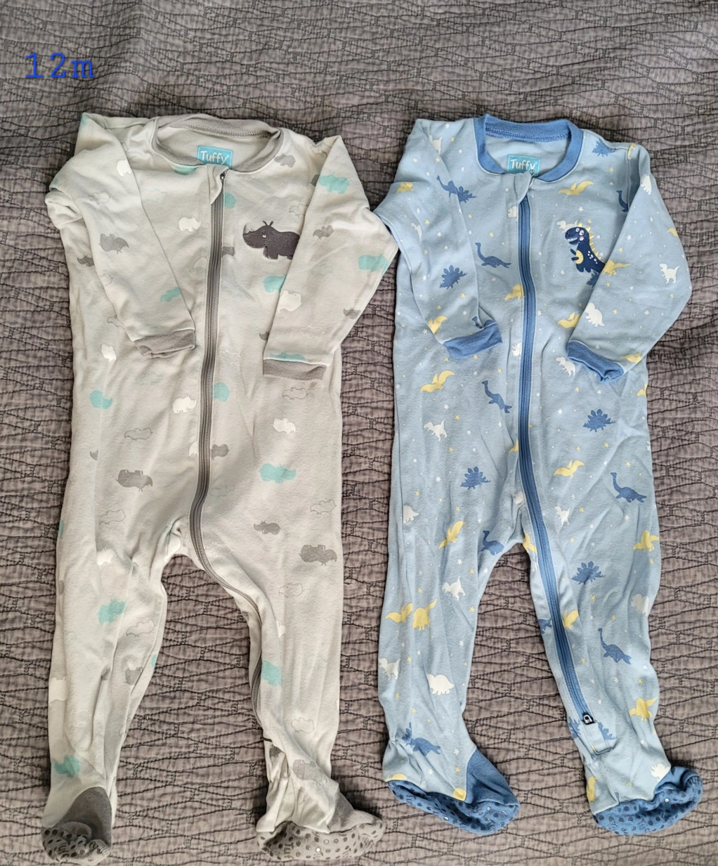 Four different styles, each with a different pattern. Each sleeper has a zipper closure and footed onesie style. 12m baby, used but in excellent condition