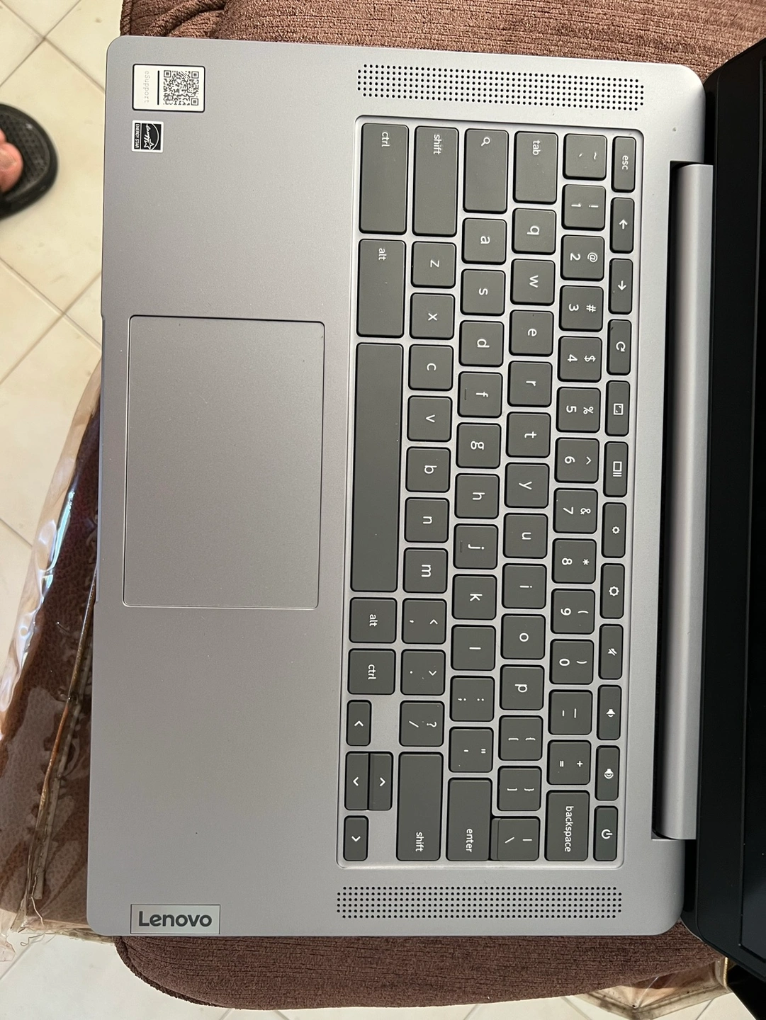 134This is a gray Chromebook with a black keyboard. It is in great condition.