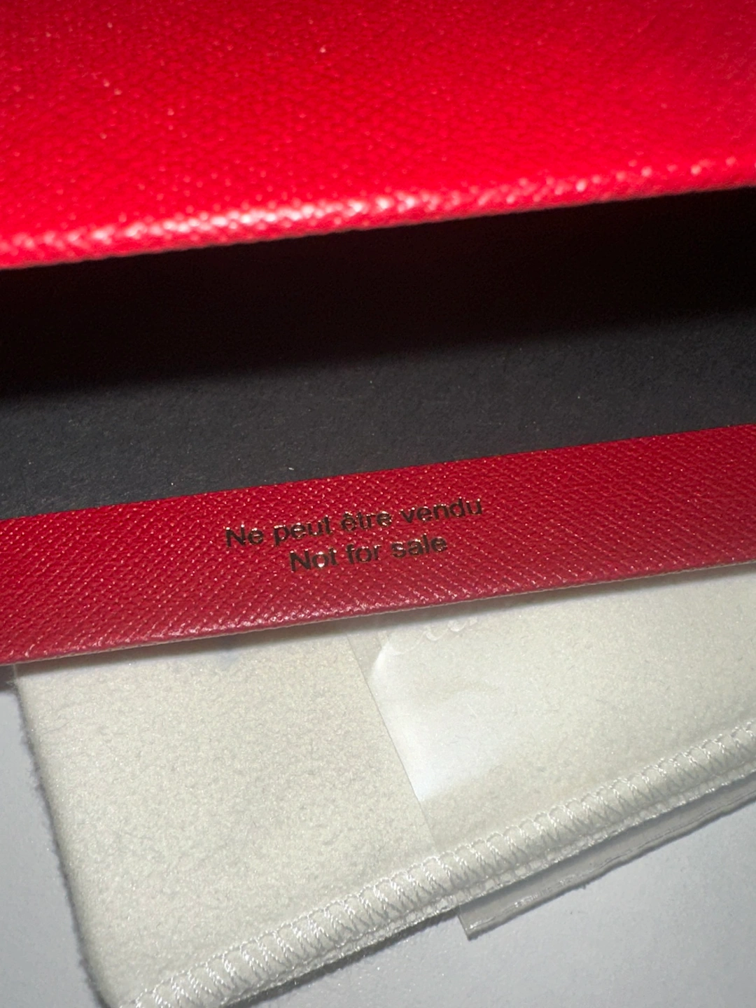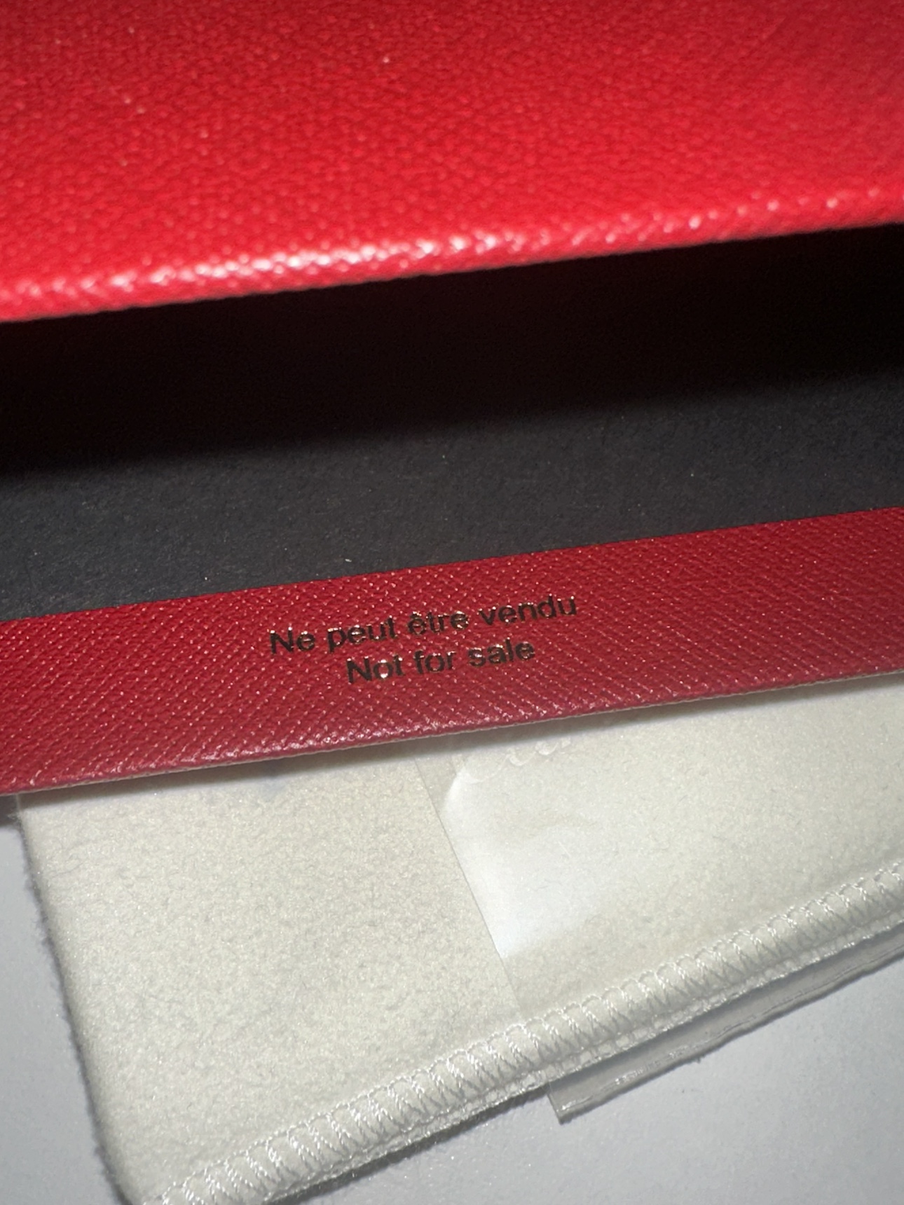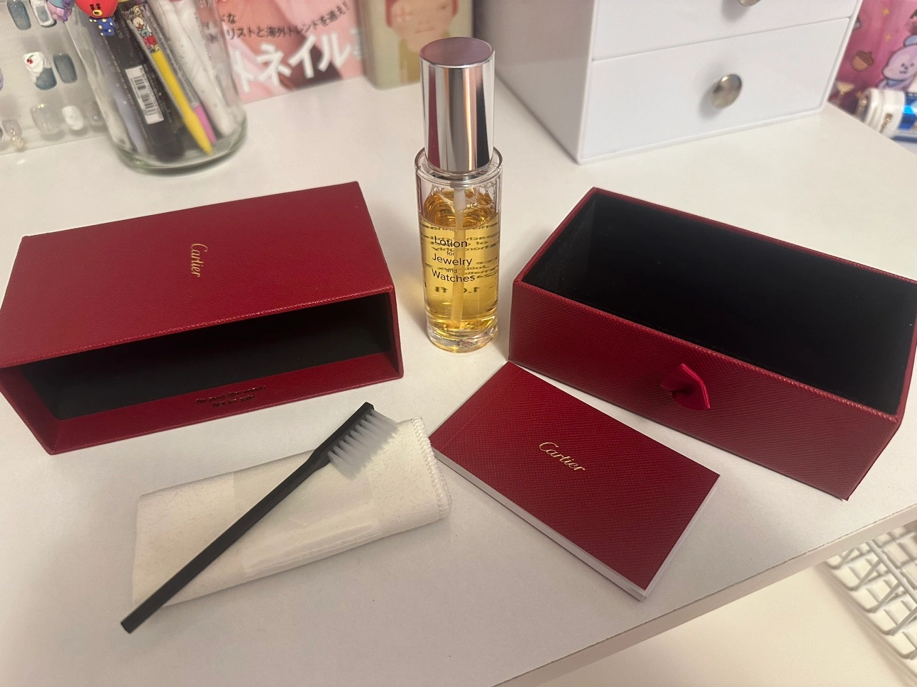 Lotion for Jewelry and Watches by Cartier, comes with a brush, cleaning cloth, and booklet. Comes in the original Cartier box. The lotion is 30ml. Only available with purchase of official Cartier watches or jewelry. The lotion has been used but the brush/cloth have not. SA pen mark on the top of the cloth