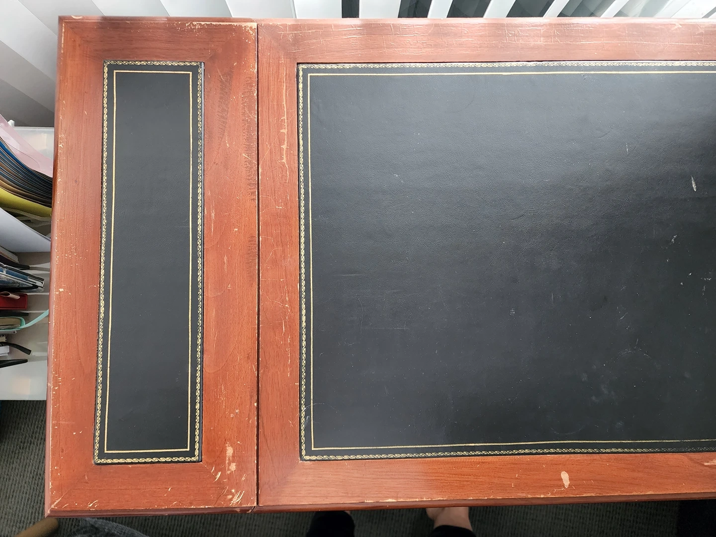 MUST GO Vintage office/writing desk, expandable, wood & leather