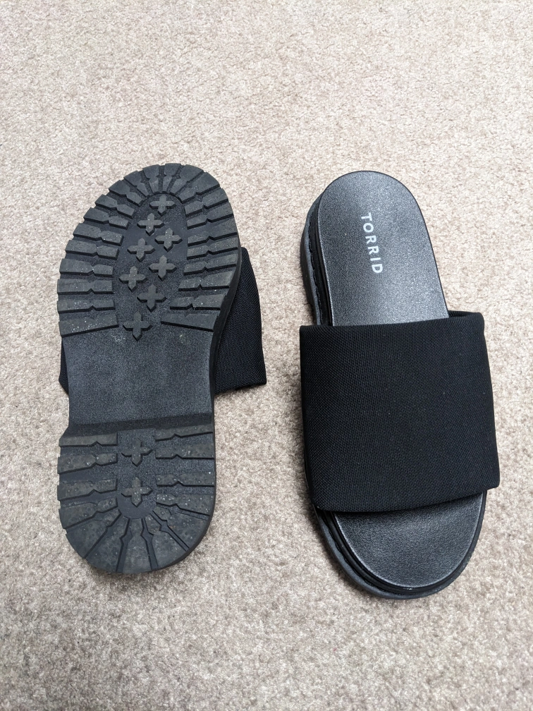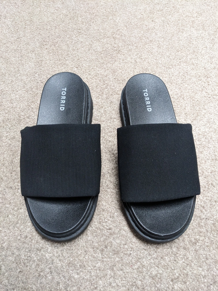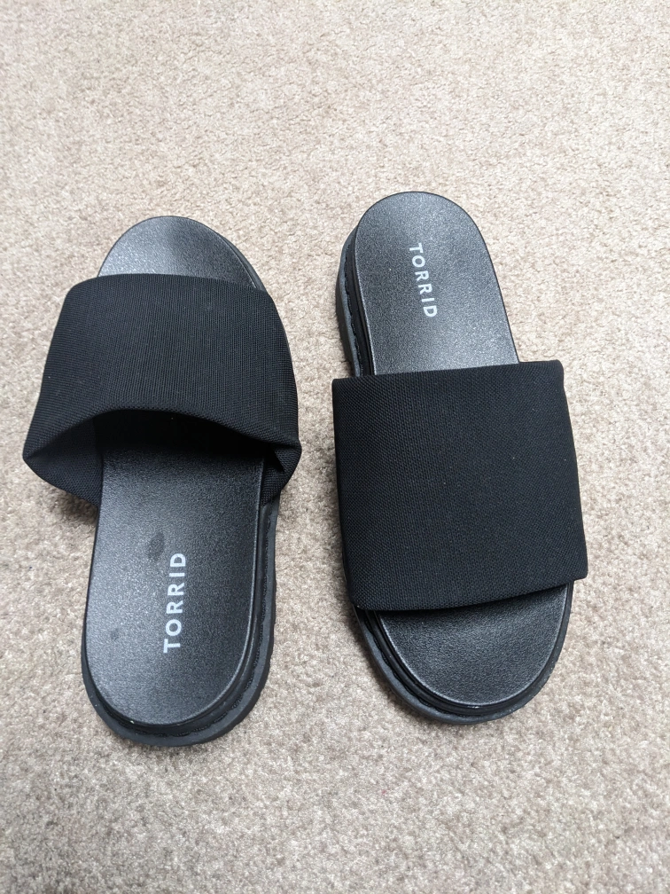 Black platform slides by Torrid. They are a comfortable and stylish option for everyday wear. They are in great condition.
