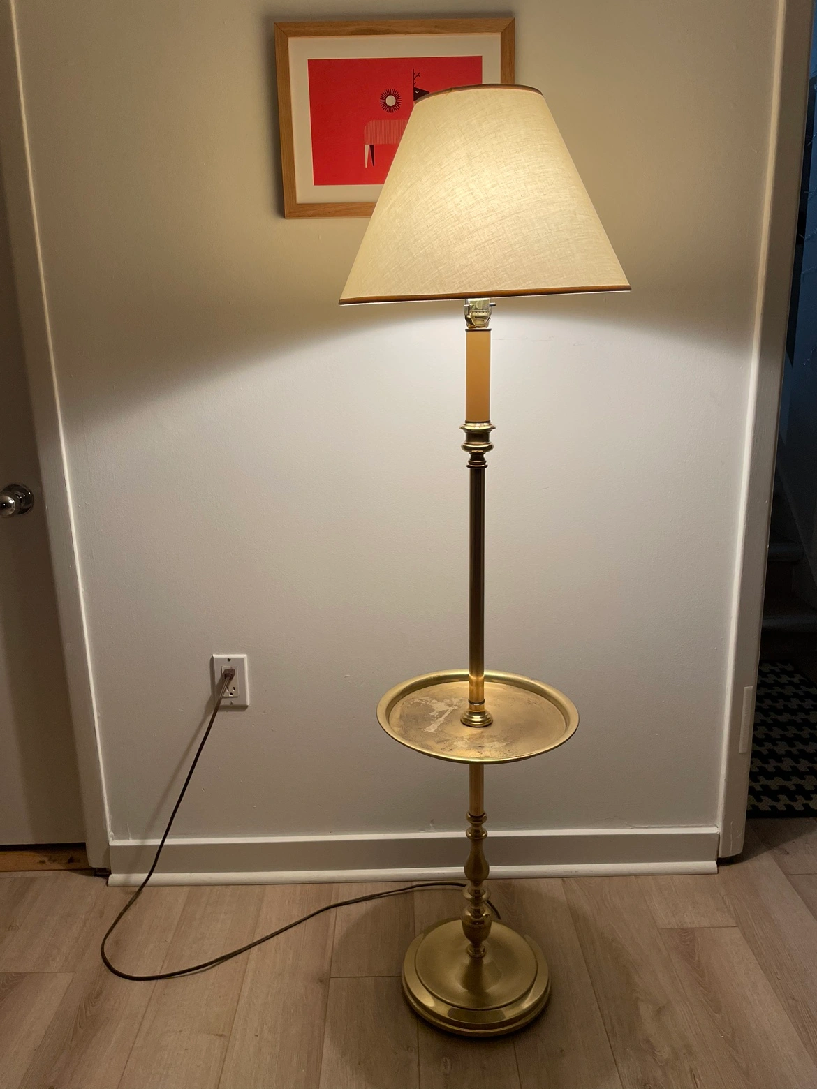 Vintage Brass Tray Table Floor Lamp - Mid-Century Design