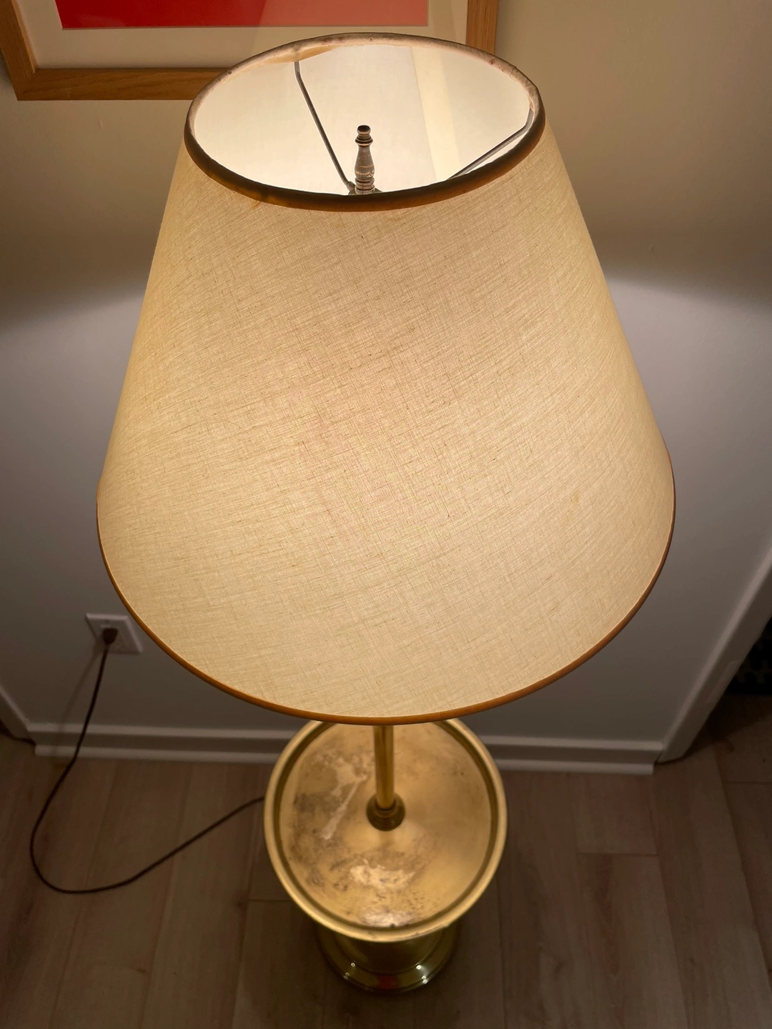 Vintage lovers, here's a stunning mid-century brass floor lamp with a built-in tray. In good condition and ready to light up your space. The tray has some wear and tear with visible scratches, but it's still functional and stylish, perfect for adding a mid-century touch to your space 🔆