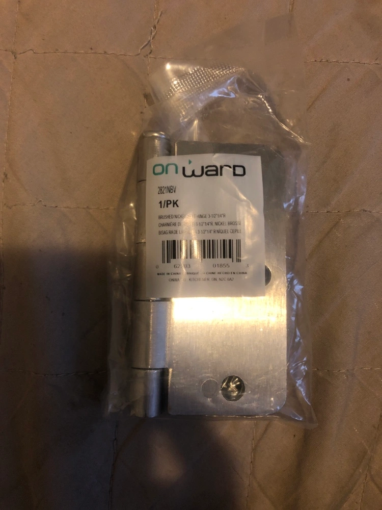 434One pack of Onward 3 1/2" door hinges in brushed nickel. Includes screws.