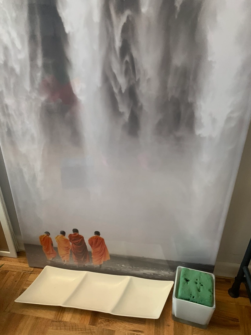 Monks & waterfall poster +decor tray + Flower arrangement