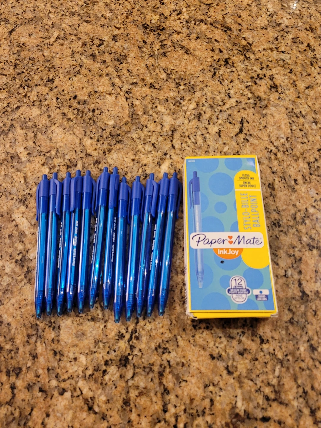 Includes: box of 12 Blue ballpoint pens