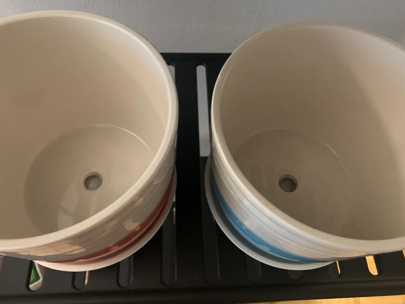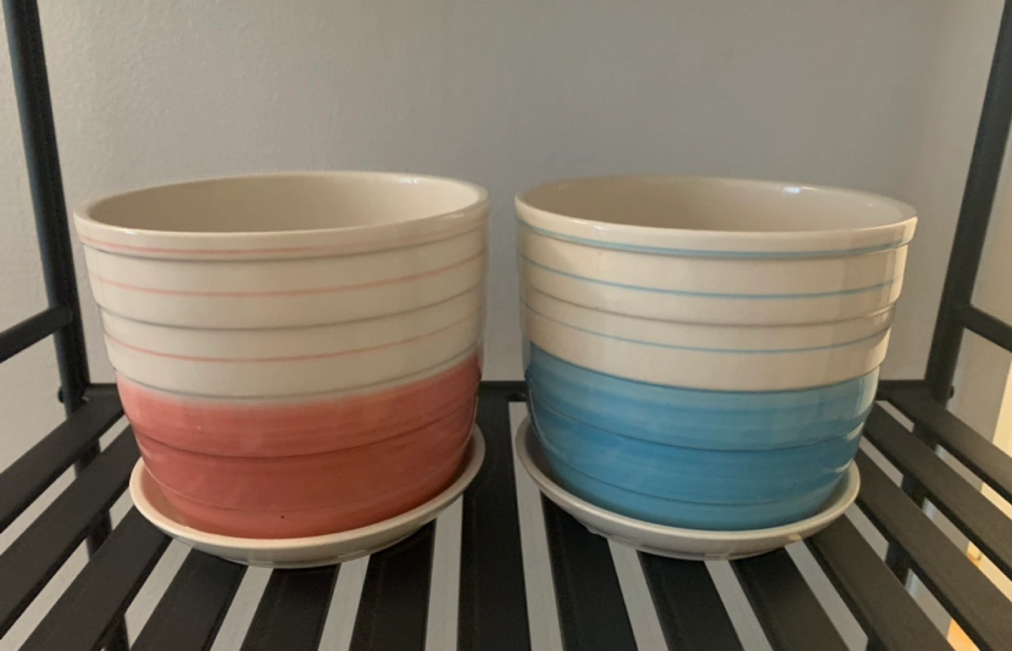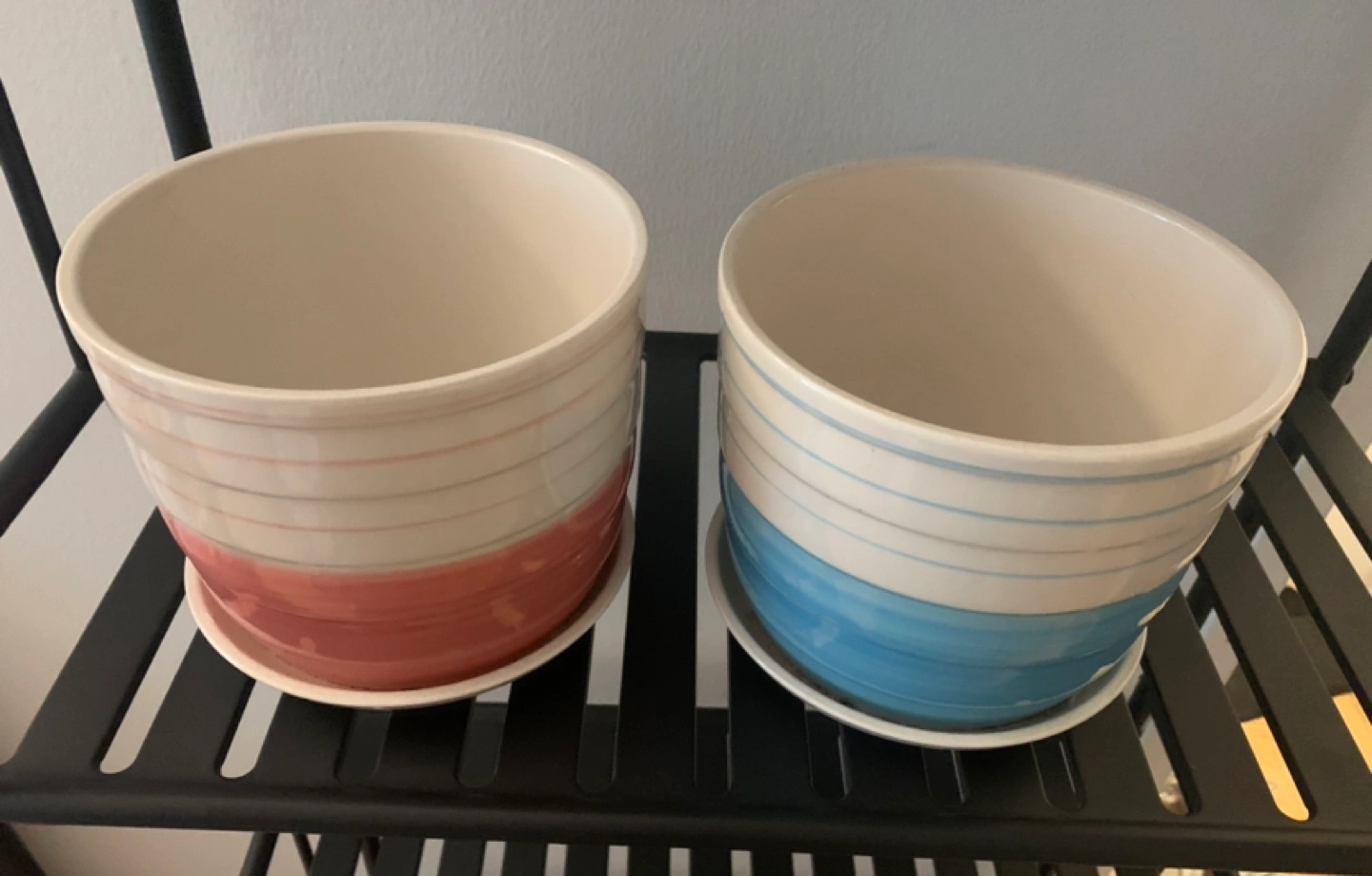 Set of 2 ceramic planters with saucers.