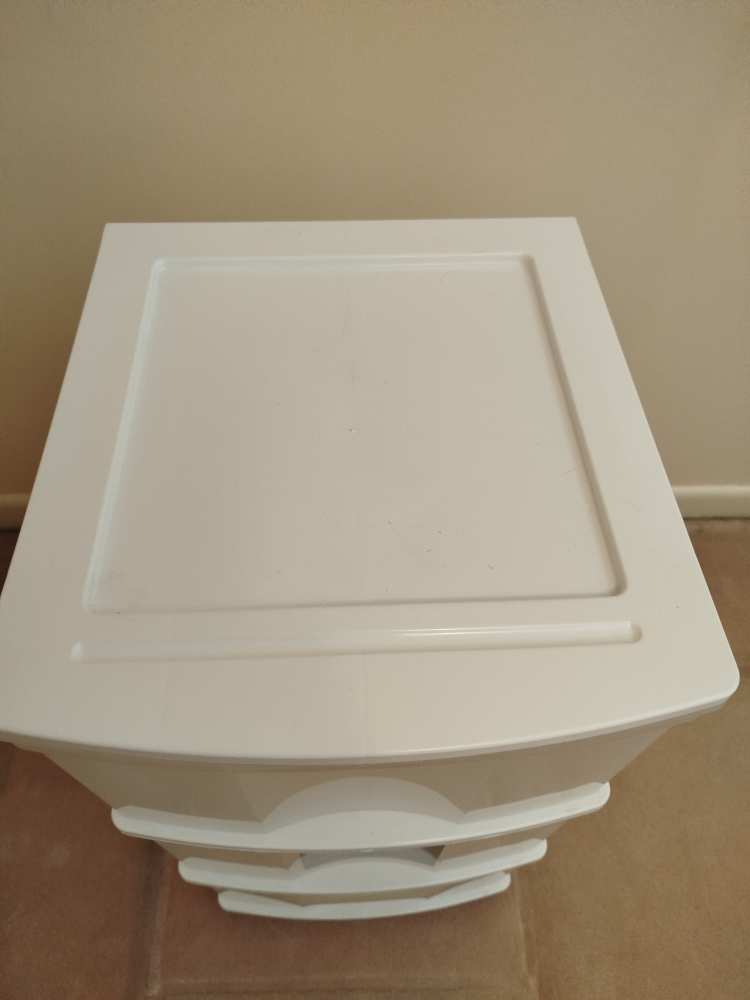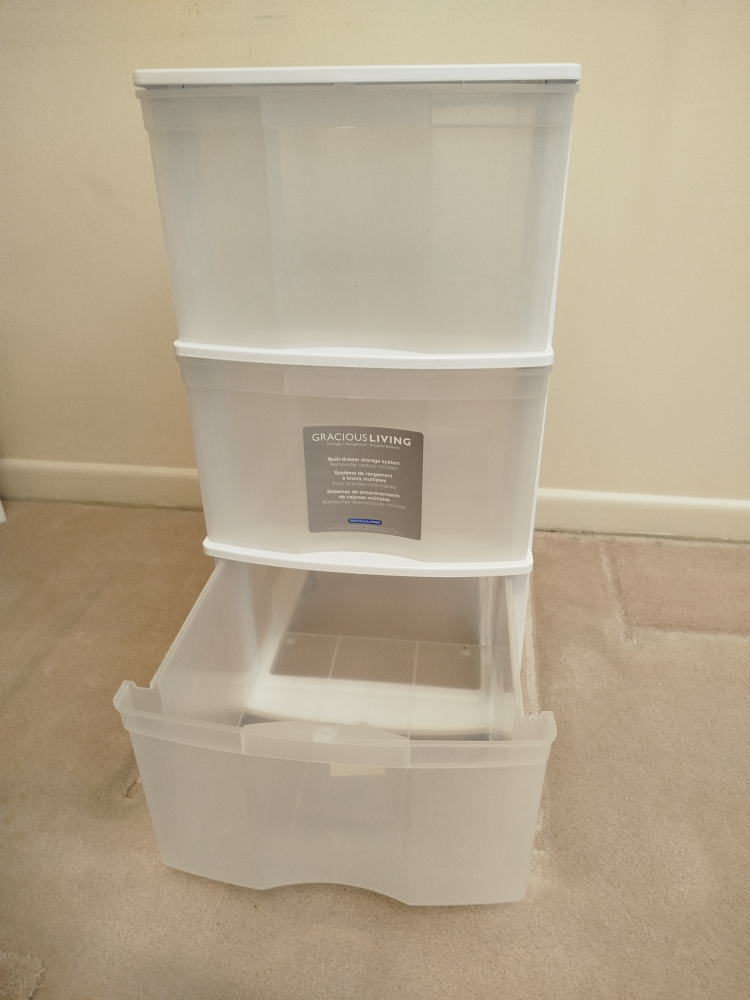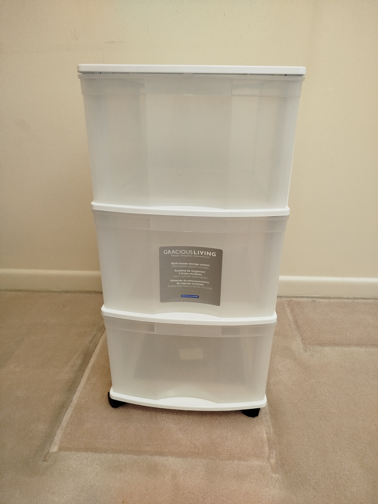 has 3 deep clear drawers. light weight and easily movable. in great condition. pick up only