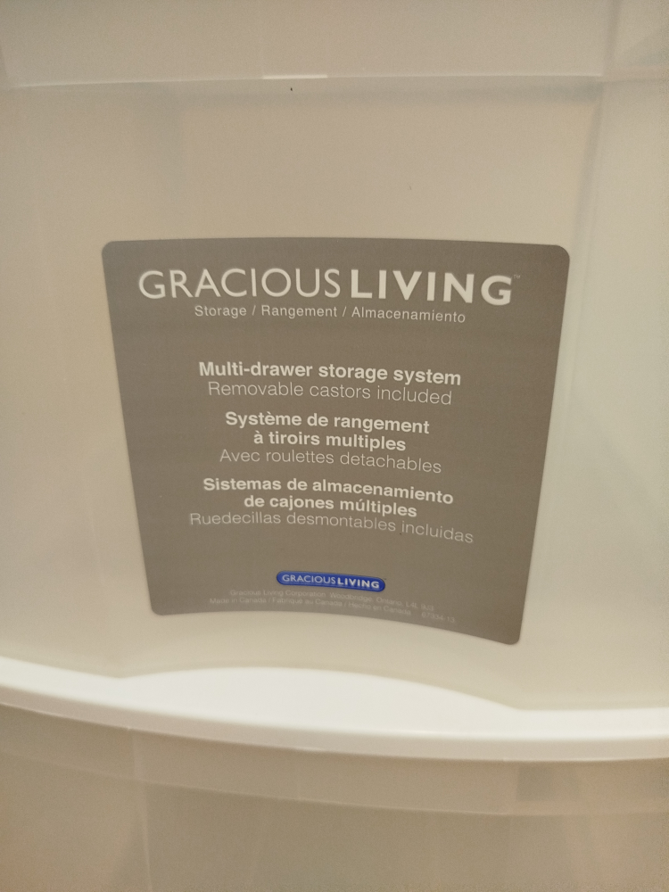 GRACIOUS LIVING-White Plastic 3 Drawer Storage Cart with Castors