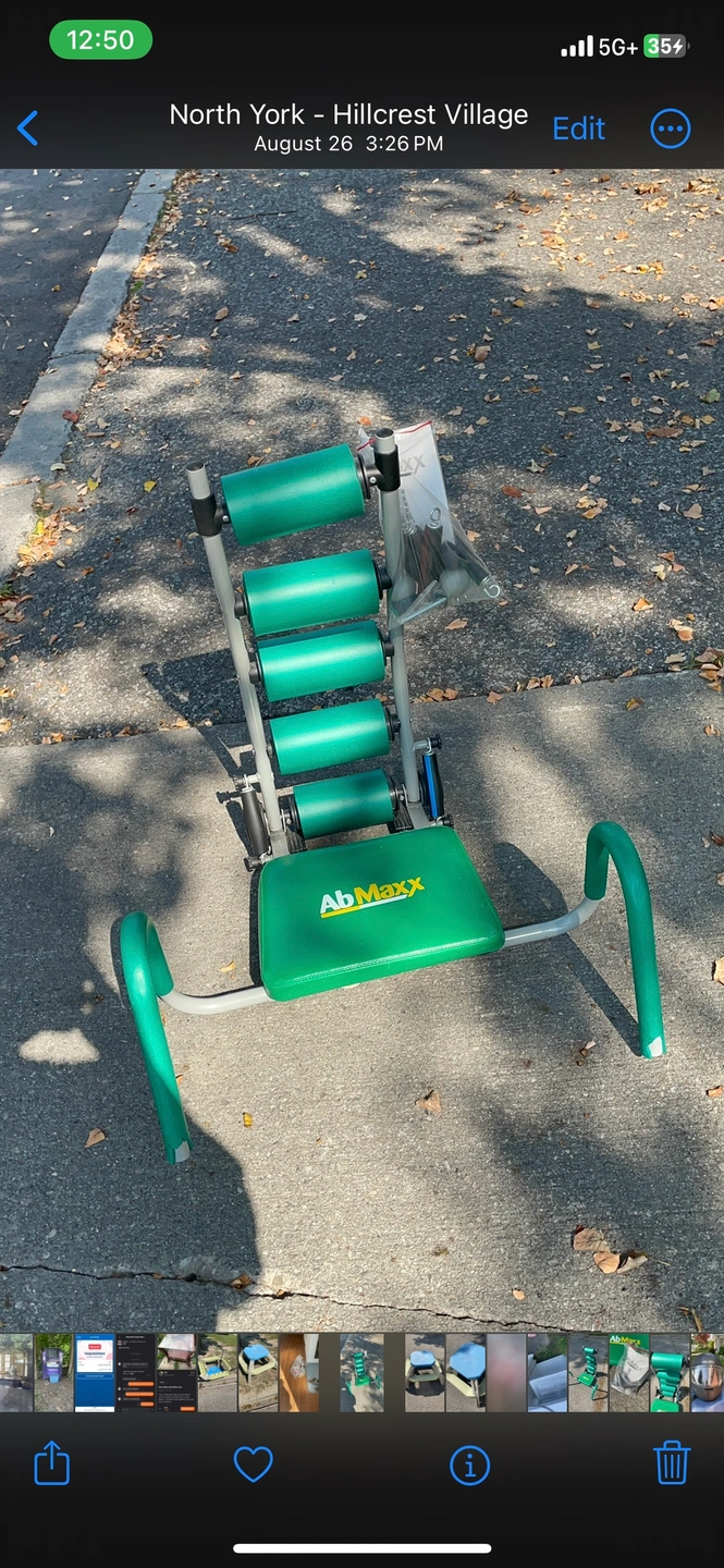 228Ab Maxx Ab Roller - Green and grey, includes all components. Excellent condition. Selling as we don't use it. Pick up only at Don mills Steele east area. All sales are final
